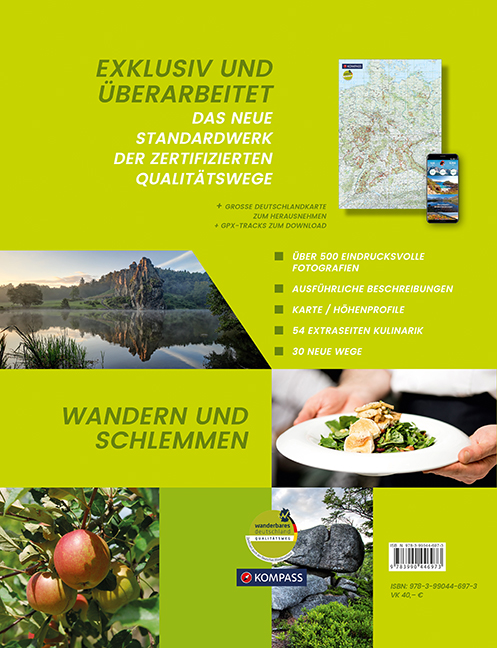 Auf den heute bundesweit 230 Qualitätswegen "Wanderbares Deutschland" ist Spaß beim Wandern garantiert. Genau das transportiert auch der neue Bildband von KOMPASS und dem DWV. Wer auf den Qualitätswegen unterwegs ist, genießt abwechslungsreiche Landschaften, verlässliche Markierungen und naturbelassenen Untergrund. Ebenso wie auf den Wegen fühlen sich Wanderer bei den rund 1.500 Qualitätsgastgebern "Wanderbares Deutschland" wohl. Hier gibt es kompetente Beratung, einen Hol- und Bringservice sowie die Möglichkeit, nasse Klamotten zu trocknen. Das Zertifikat Qualitätsregion "Wanderbares Deutschland" hebt die ausgezeichneten Gebiete in die Königsklasse aller Wanderregionen. Service, ÖPNV, Unterkünfte oder Wege: Hier stimmt alles!