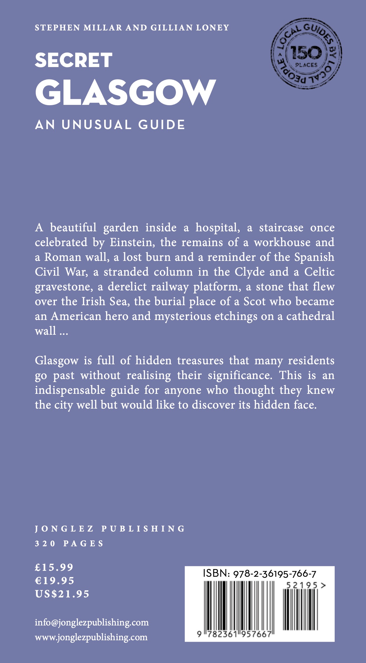 A beautiful garden inside a hospital, a staircase once celebrated by Einstein, the remains of a workhouse and a Roman wall, a lost burn and a reminder of the Spanish Civil War, a stranded column in the Clyde and a Celtic gravestone, a derelict railway platform, a stone that flew over the Irish Sea, the burial place of a Scot who became an American hero and mysterious etchings on a cathedral wall ...Glasgow is full of hidden treasures that many residents go past without realising their significance.