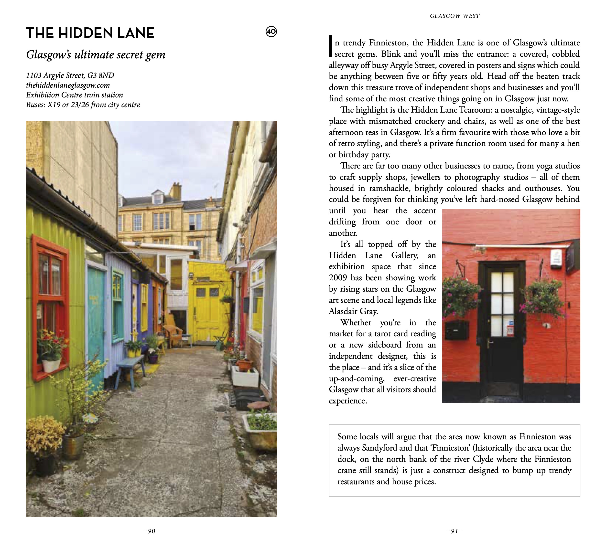 Don't miss - Each chapter of this Secret Glasgow travel guide book corresponds to a different part of the city so that one can always find a hidden or secret place to discover