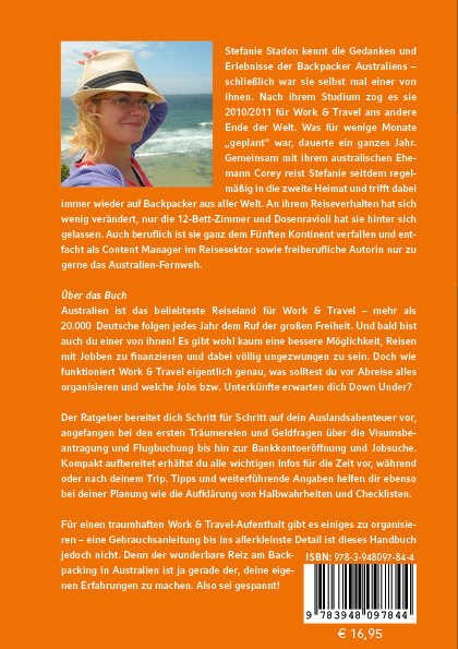 Australien ist das beliebteste Reiseland für Work & Travel - mehr als 20.000 Deutsche folgen jedes Jahr dem Ruf der großen Freiheit. Und bald bist auch du einer von ihnen! Es gibt wohl kaum eine bessere Möglichkeit, Reisen mit Jobben zu finanzieren und dabei völlig ungezwungen zu sein. Doch wie funktioniert Work & Travel eigentlich genau, was solltest du vor der Abreise alles organisieren und welche Jobs bzw. Unterkünfte erwarten dich Down Under? Der Ratgeber bereitet dich Schritt für Schritt auf dein Auslandsabenteuer vor, angefangen bei den ersten Träumereien und Geldfragen über die Visumsbeantragung und Flugbuchung bis hin zur Bankkontoeröffnung und Jobsuche. Kompakt aufbereitet erhältst du alle wichtigen Infos vor, während und nach deiner Zeit in Australien. Tipps und weiterführende Angaben helfen dir ebenso bei deiner Planung wie die Aufklärung von Halbwahrheiten und Checklisten. Für einen traumhaften Work & Travel-Aufenthalt gibt es einiges zu organisieren - eine Gebrauchsanleitung bis ins allerkleinste Detail ist dieses Handbuch jedoch nicht. Denn der wunderbare Reiz am Backpacking in Australien ist ja gerade der, deine eigenen Erfahrungen zu machen. Also sei gespannt!