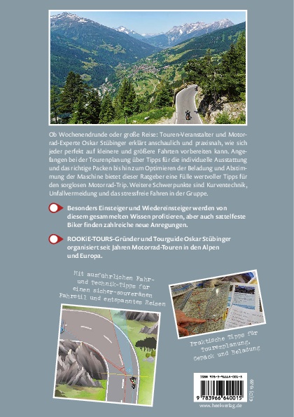 Ob Wochenendrunde oder große Reise: Touren-Veranstalter und Motorrad-Experte Oskar Stübinger erklärt anschaulich und praxisnah, wie sich jeder perfekt auf kleinere und größere Fahrten vorbereiten kann. Angefangen bei der Tourenplanung über Tipps für die individuelle Ausstattung und das richtige Packen bis hin zum Optimieren der Beladung und Abstimmung der Maschine bietet dieser Ratgeber eine Fülle wertvoller Tipps für den sorglosen Motorrad-Trip. Weitere Schwerpunkte sind Kurventechnik, Unfallvermeidung und das stressfreie Fahren in der Gruppe. Besonders Einsteiger und Wiedereinsteiger werden von diesem gesammelten Wissen profitieren, aber auch sattelfeste Biker finden zahlreiche neue Anregungen. ROOKiE-TOURS-Gründer und Tourguide Oskar Stübinger organisiert seit Jahren Motorrad-Touren in den Alpen und Europa. Mit ROOKiE-TOURS Motorradreisen hat sein Team und er es sich zur Aufgabe gemacht, Einsteigern und Wiedereinsteigern die Themen zu vermitteln, die weder in der Fahrschule noch beim Fahrsicherheitstraining ausführlich besprochen werden können. So zum Beispiel das richtige Packen und Beladen des Motorrads, das Fahren in der Gruppe oder in den Bergen und bei Wind und Wetter. In diesem Buch findest du Wissen, Tipps und Tricks aus vielen Jahren Tourenerfahrung. Dieses Buch soll dir wertvolle Unterstützung dabei sein, bewusst und intensiv Fahrpraxis zu sammeln und dabei unnötige Fehler zu vermeiden. Mit ausführlichen Fahr- und Technik-Tipps für einen sicher-souveränen Fahrstil und entspanntes Reisen! Inklusive schöner Tourentipps durch die Alpen von Kurveneldorado.com und Rabattgutschein von ROOKIE-Tours!