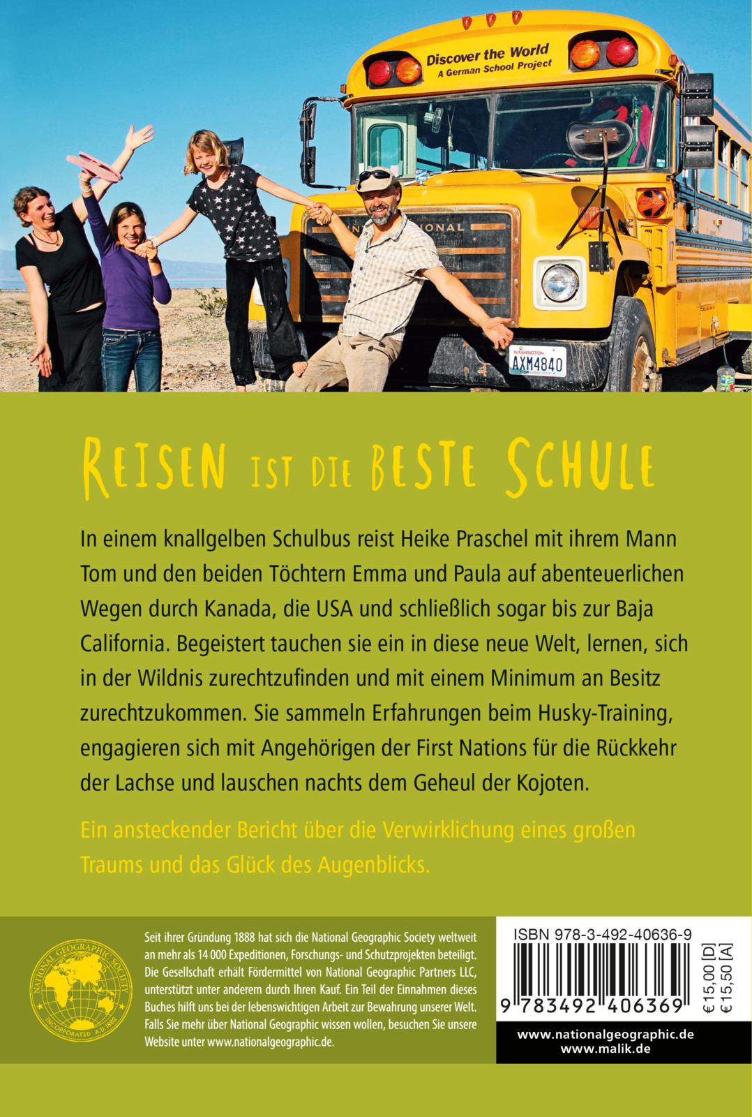 Vier Jahre nach ihrer turbulenten Weltreise zieht es Heike Praschel mit ihrer Familie erneut in die Ferne. Sie fahren in einem umgebauten Schulbus durch Kanada und Alaska bis zum Polarkreis und anschließend Richtung Süden bis nach Mexiko. Für ein Jahr vom Schulunterricht befreit, tauchen Emma, 9, und Paula, 7, begeistert ein in diese neue Welt. Zusammen mit ihren Eltern lernen sie, sich in der Wildnis zurechtzufinden und mit einem Minimum an Besitz zurechtzukommen. Sie sammeln Erfahrungen beim Husky-Training, engagieren sich mit Angehörigen der First Nations für die Rückkehr der Lachse und lauschen nachts dem Geheul der Kojoten. Ein lebendiger Bericht über ein großes Reiseabenteuer, die Verwirklichung von Träumen und das Glück des Augenblicks.