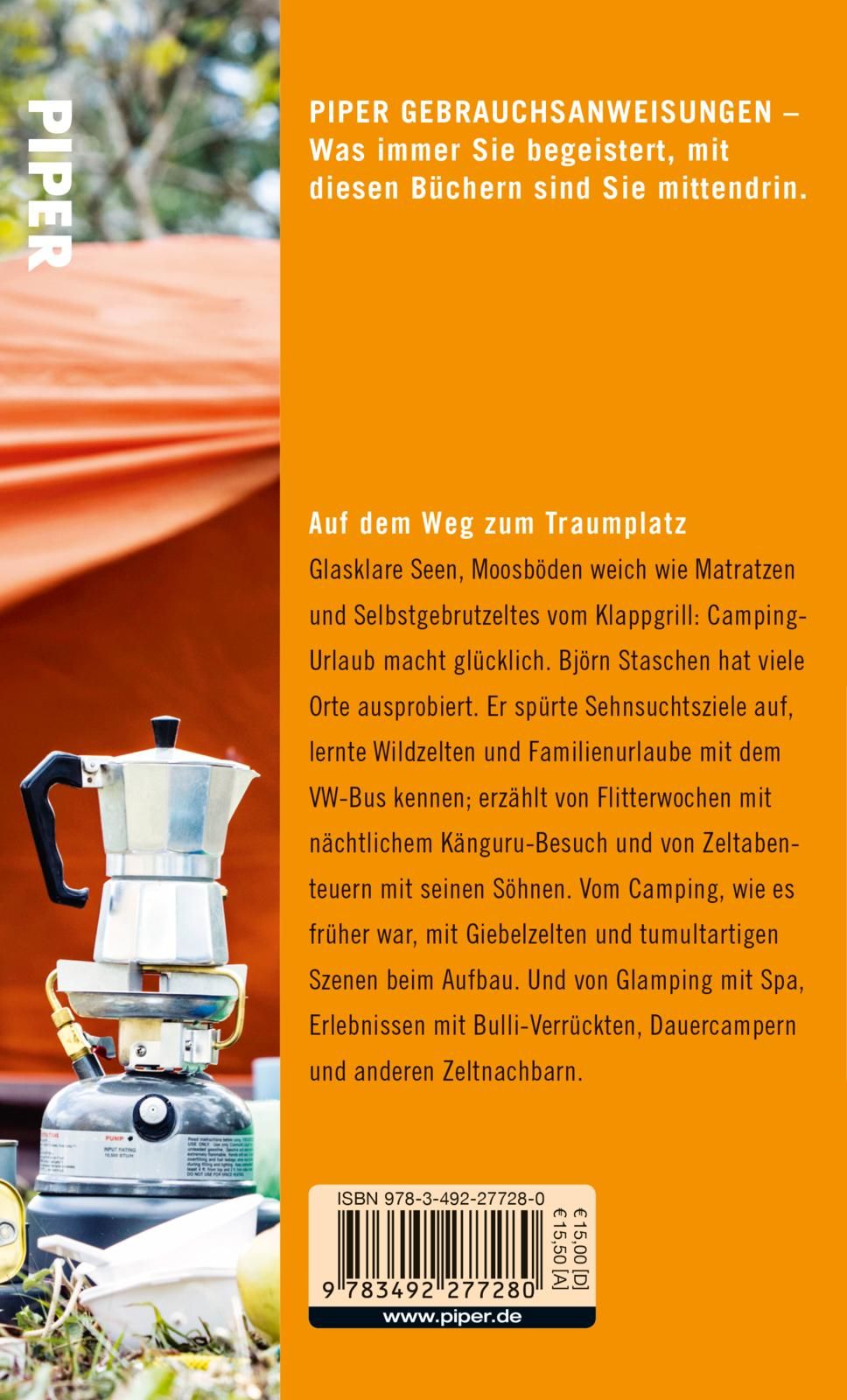Glasklare Seen, Moosböden weich wie Matratzen und Selbstgebrutzeltes vom Klappgrill: Camping-Urlaub macht glücklich. Björn Staschen, der mit "Cool Camping Deutschland" die "Bibel für alle Frischluft-Fanatiker und Zelt-Enthusiasten" (MDR) schrieb, hat viele Orte ausprobiert. Er spürte Sehnsuchtsziele auf, lernte Wildzelten und Familienurlaube mit dem VW-Bus kennen; weiß, wo Lagerfeuer erlaubt sind und worauf es bei der Suche nach dem perfekten Standplatz ankommt. Er erzählt von Flitterwochen mit nächtlichem Känguru-Besuch und von Zeltabenteuern mit seinen Söhnen. Vom Camping, wie es früher war, mit Giebelzelten und Tumult beim Aufbau. Von Wetterstürzen und Glamping, von Erlebnissen mit Zeltnachbarn und Bulli-Verrückten.