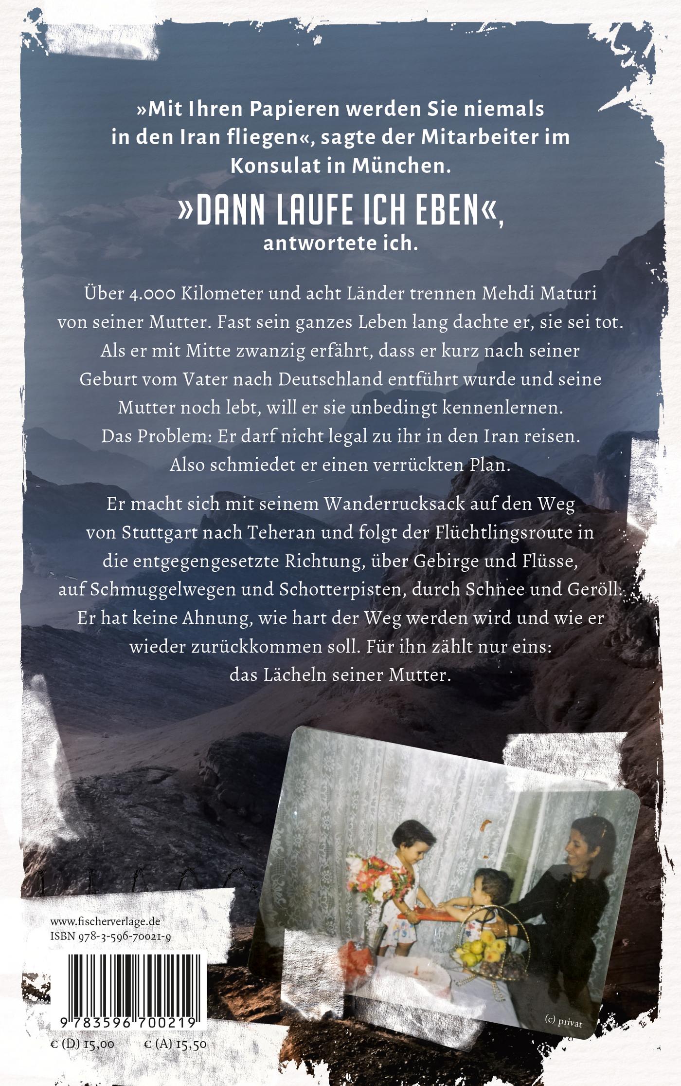 | Schlagworte | Abenteuer • Bewusst leben • Deutschland • Entführung • Familie • Flucht • Gefahr • Griechenland • Heimat • Illegal • Iran • Lächeln • Mutter • Muttertag • Schlepper • Schwimmen • SPIEGEL-Bestseller • Suche • Teheran • Wandern • Wurzeln • Zu Fuß |