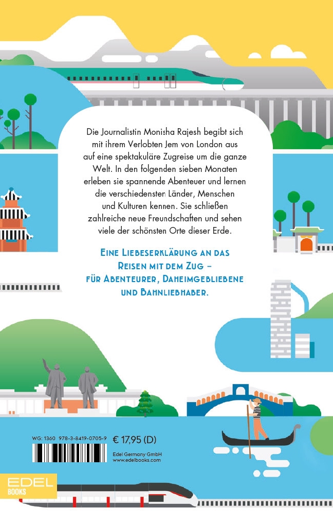 Als Monisha Rajesh verkündet, dass sie die Welt in 80 Zugreisen umrunden möchte, zweifelt ihr Umfeld stark an der Durchführbarkeit. Doch tatsächlich macht sie sich kurz darauf auf eine atemberaubende, über 70.000 Kilometer lange Reise durch zahlreiche Länder und Kontinente. Dabei lernt sie nicht nur die spannendsten Bahnstrecken der Welt, sondern auch jede Menge interessante Menschen kennen. Ein humorvoller, intimer Blick auf die Welt und eine Hommage an das Reisen mit der Eisenbahn.