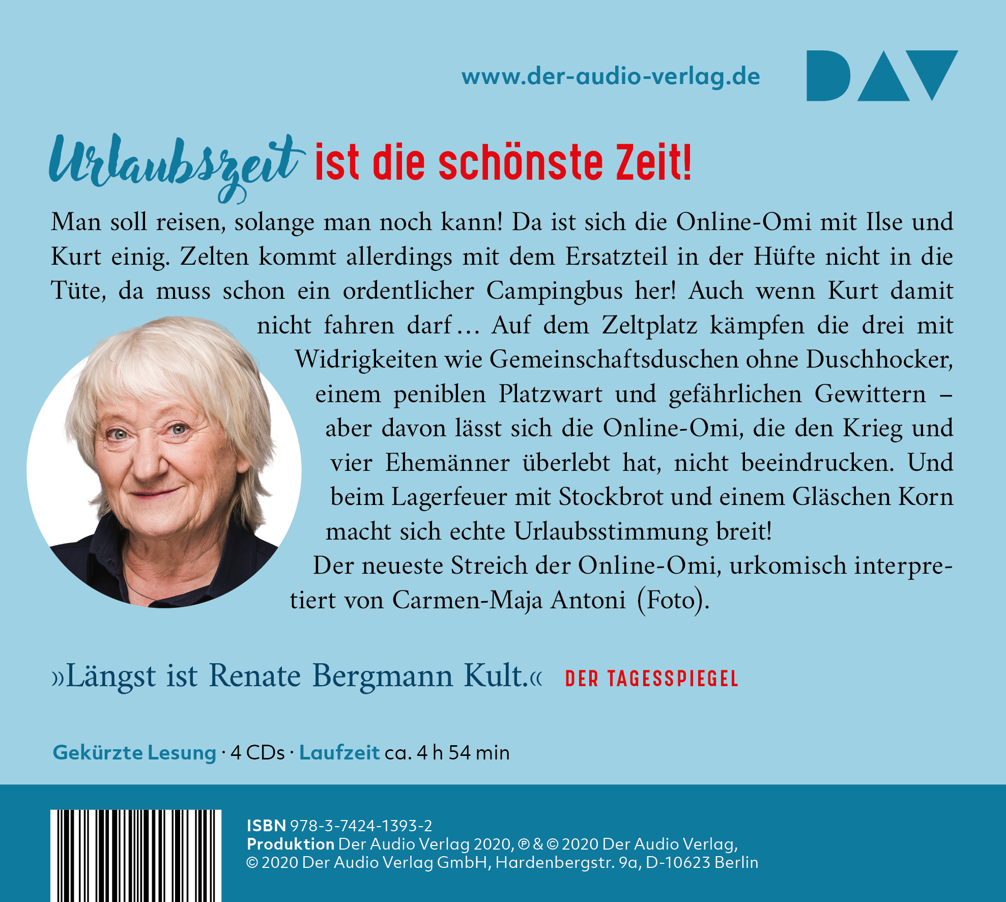 | Schlagworte | Berlin Spandau • Camper • Camping • Facebook • Geschenk • Handy • Humor • Internet • lustiges Hörbuch • lustiges Hörbuch • Online-Omi • Reisen • Rentnerin • Sommer • Twitter • Twitter-Omi • Urlaub • Wohnmobil • Wohnwagen • Zeltplatz |