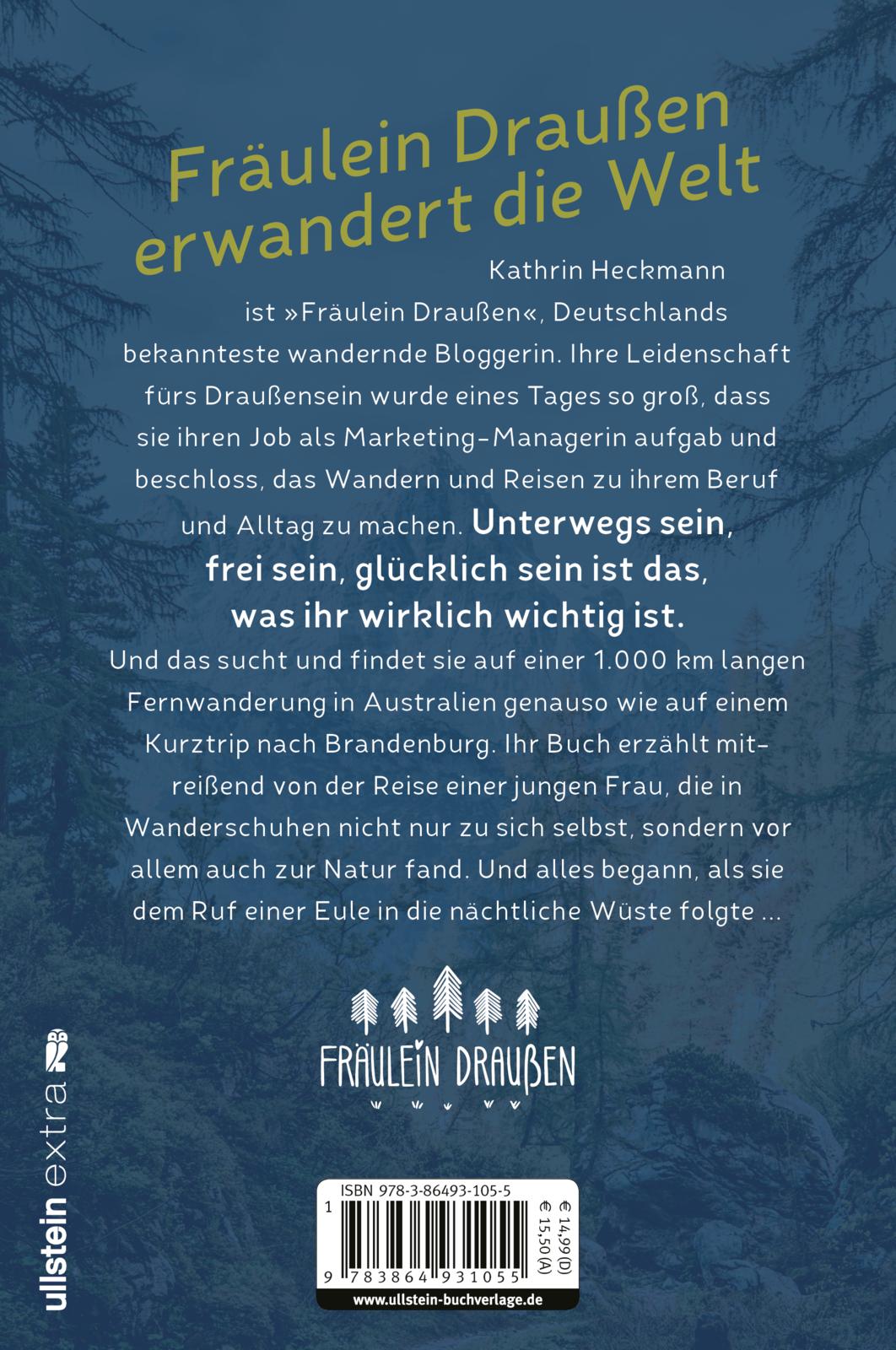 Kathrin Heckmann ist "Fräulein Draußen", Deutschlands bekannteste wandernde Bloggerin. Ihre Leidenschaft fürs Draußensein wurde eines Tages so groß, dass sie ihren Job als Marketing-Managerin aufgab und beschloss, das Wandern und Reisen zu ihrem Beruf und Alltag zu machen. Dabei müssen es aber nicht die höchsten Gipfel oder die weitesten Wege sein. Unterwegs sein, frei sein, glücklich sein ist das, was ihr wirklich wichtig ist. Und das sucht und findet "Fräulein Draußen" auf einer 1.000 km langen Fernwanderung in Australien genauso wie auf einem Kurztrip nach Brandenburg. Ihr Buch erzählt mitreißend von der Reise einer jungen Frau, die in Wanderschuhen nicht nur zu sich selbst, sondern vor allem auch zur Natur fand. Und alles begann, als sie dem Ruf einer Eule in die nächtliche Wüste folgte ...