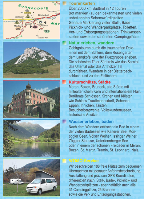 EINLADUNGAuf geht's nach Italien - Spaghetti, schwarzgelockte Burschen, die tiefblaue Adria, endlose Sandstrände und Sonnenbrand locken uns nach Süden!?Nun ja, Sonnenbrand könnte ich Ihnen eventuell versprechen, aber ansonsten werden Sie in Süd-Tirol wohl kaum "Südländisches" und schon gar nichts "Italienisches" entdecken.Süd-Tirol ist der Süden Tirols und seit 1000 Jahren leben dort Deutsche. Nach Ende des Ersten Weltkrieges wurde Süd-Tirol Italien zugesprochen, seitdem lernt man in der Schule als Fremdsprache italienisch, beschriftet die Ortsschilder zweisprachig und fühlt sich - welch glückliche Fügung der Geschichte - als Europäer!Und diese kommen in Scharen als Urlauber, denn Süd-Tirol ist weder kalter Norden noch hitzeflimmernder Süden, sondern ein landschaftliches Paradies!Wenn wir noch bibbernd hinterm Ofen hocken, spaziert man dort schon zwischen blühenden Obstbäumen, im Sommer ist Süd-Tirol ein Wanderziel erster Güte und im Herbst sitzt man Blauburgunder schlürfend in den Weinlauben, von den Alpenkämmen vor den kalten Nordwinden geschützt.Ja, die Berge! Sie sind natürlich die Hauptattraktion dieses kleinen Landes, das man mit einem schnellen Auto längs in einer Stunde durchrasen könnte, wenn nicht die Berge im Wege stehen würden - aber was für Berge!CaMg(CO3)2 wird Ihnen vielleicht nicht viel sagen, aber die Kristallstruktur des Dolomits ist wohl verantwortlich für die grandiosen Felstürme, die wir mit Ihnen in den Dolomiten ersteigen werden!Sie wollen nicht bergsteigen? Dann rollen Sie mit uns durch Schluchten und über Pässe, durch liebliche Täler und zu einsamen Almen. Lassen Sie sich anstecken von der Begeisterung und der Liebe, die aus jedem Süd-Tiroler spricht, wenn er von seiner Heimat erzählt.Wir zeigen Ihnen alle landschaftlichen, aber auch die kulturellen Höhepunkte Süd-Tirols, schlendern mit Ihnen durch romantische Laubengassen, besichtigen einmalige Kunstschätze - und irgendwann haben wir auch Sie soweit, dass Sie mit uns zu einer kleinen Tour starten, um die herrliche Natur, das Herz Süd-Tirols, wirklich kennenzulernen!Ihre Waltraud Roth-Schulz