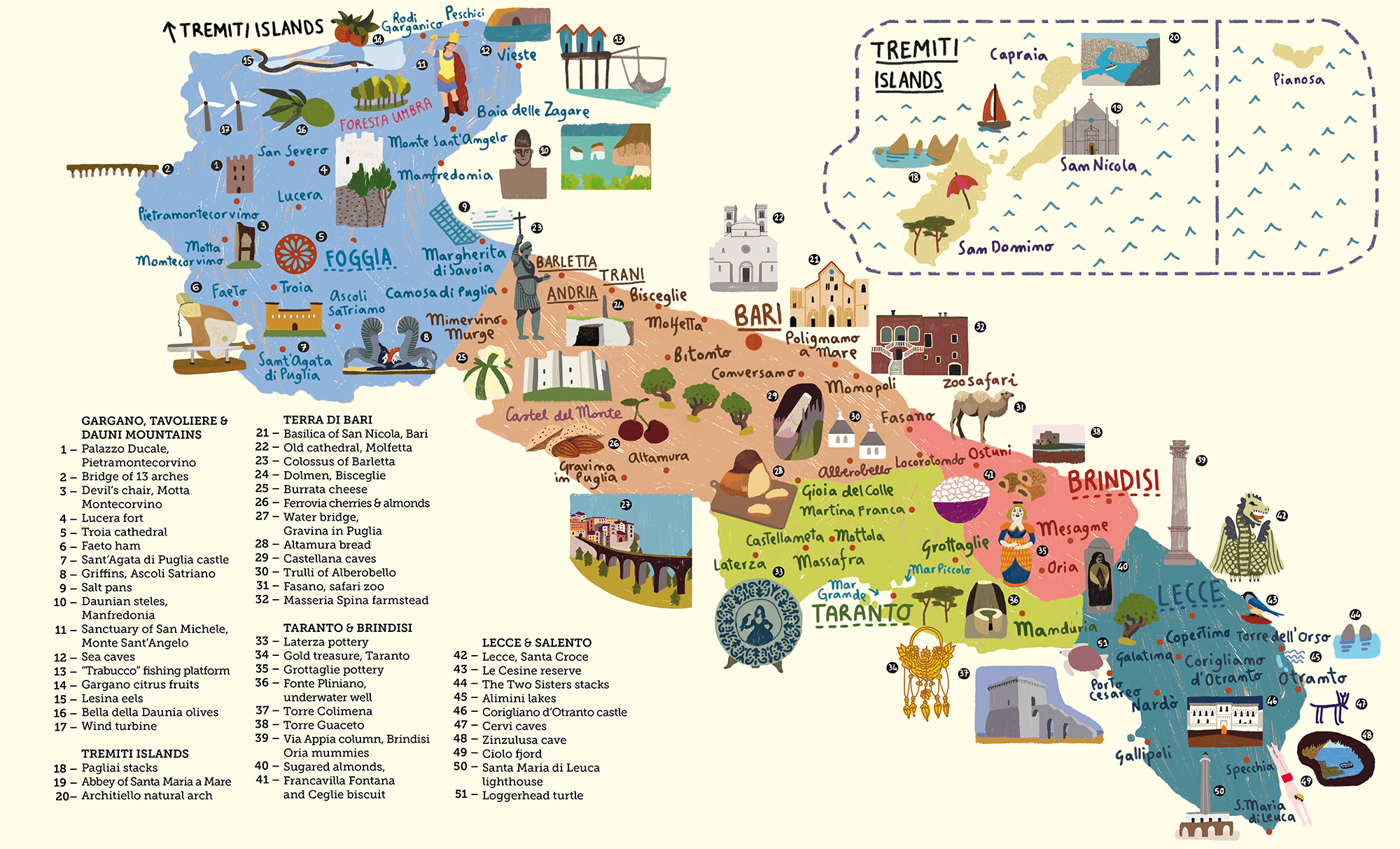 Wusstest Du, dass es in Apulien unterirdische Höhlen, Olivenbaumwälder und sogar Mumien gibt? Und dass der Weihnachtsmann apulischen Ursprungs ist? Von Bari bis Lecce, vom Gargano bis Taranto: Dieser Bildband ist eine abenteuerliche Entdeckungsreise durch Trulli und Traditionen durch Kultur und Kuriositäten wie Schiffswracks und Meerjungfrauen. Nicht fehlen dürfen dabei traumhafte Strände und natürlich die köstliche apulische Küche.