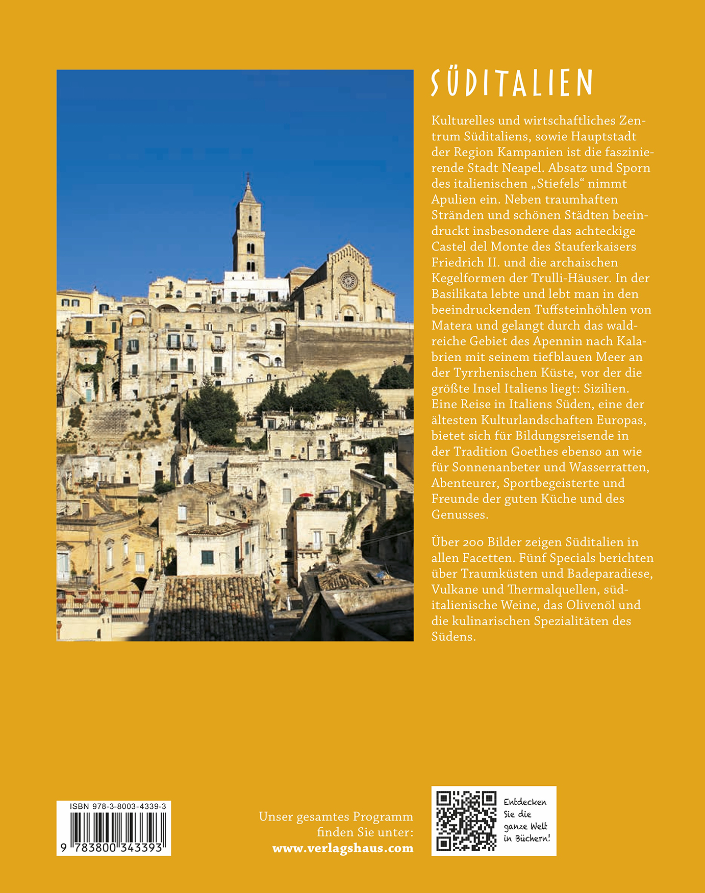 | Schlagworte | Amalfi • Amalfiküste • Apulien • Ätna • Basilkata • Bildband • Brindisi • Capopassero • Capri • Castel del Monte • Catania • Cilento • Cilento Nationalpark • Golf von Neapel • Golf von Salerno • Großformatbildband • Ischia • Italien • Kalabrien • Kampanien • Lecce • Liparische Inseln • Messina • Neapel • Oasi de Vendicari • Palermo • Reisebildband • Sizilien • Stromboli • Süditalien • Taormina • Tempel von Paestum • Tropea • Tyrrhenisches Meer |