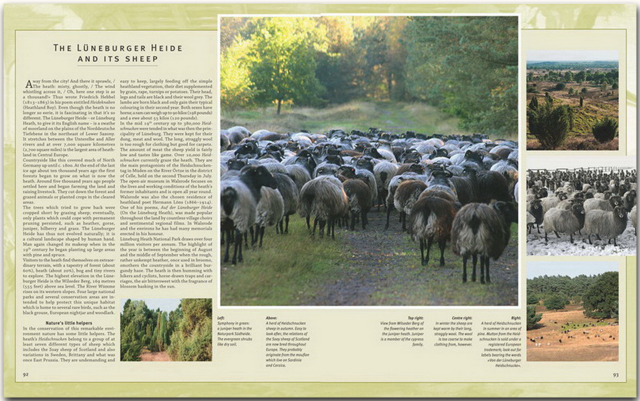 Über 215 Bilder zeigen Niedersachsen in all seinen Facetten. Vier Specials berichten über den besonderen Landstrich Ostfriesland, die Künstlerkolonie Worpswede, die Lüneburger Heide samt ihrere Heideschnucken sowie über ein bedeutendes Stück Automobilgeschichte.
