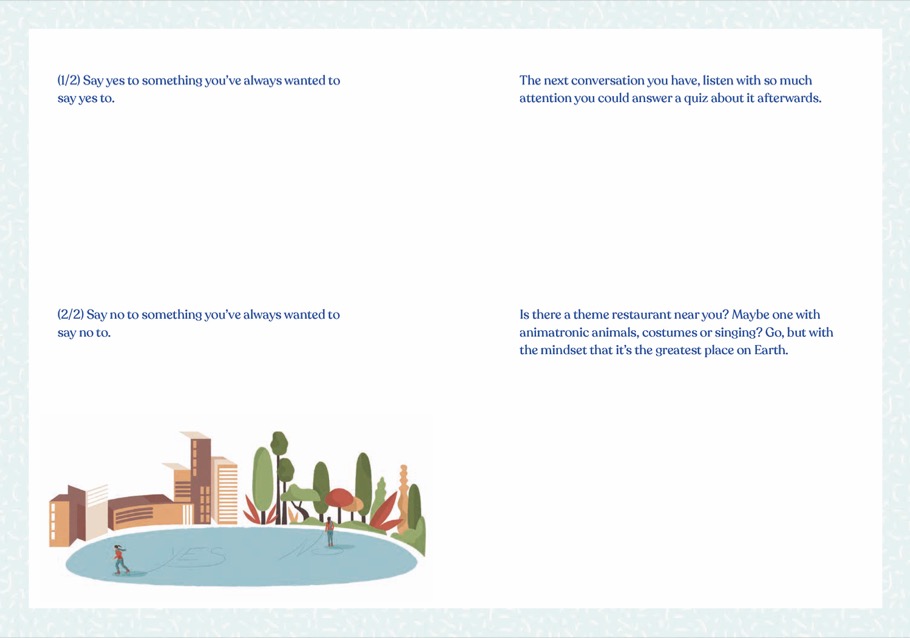 Neue Kulturen kennenlernen, spannende Leute treffen, aufregende Abenteuer erleben – das soll nur auf Reisen funktionieren? Sicher nicht, wenn Sie den 365 Anregungen unseres Ideengebers folgen! Kochen Sie ein Rezept mit einem neuen Gewürz, bewundern Sie ein Graffiti Ihrer Stadt als wäre es ein Meisterwerk, gehen Sie im Rockstar-Outfit zur Arbeit... Diese und weitere 362 Ideen werden Ihren Alltag zwar nicht ändern, aber ihn sicher bunter machen.