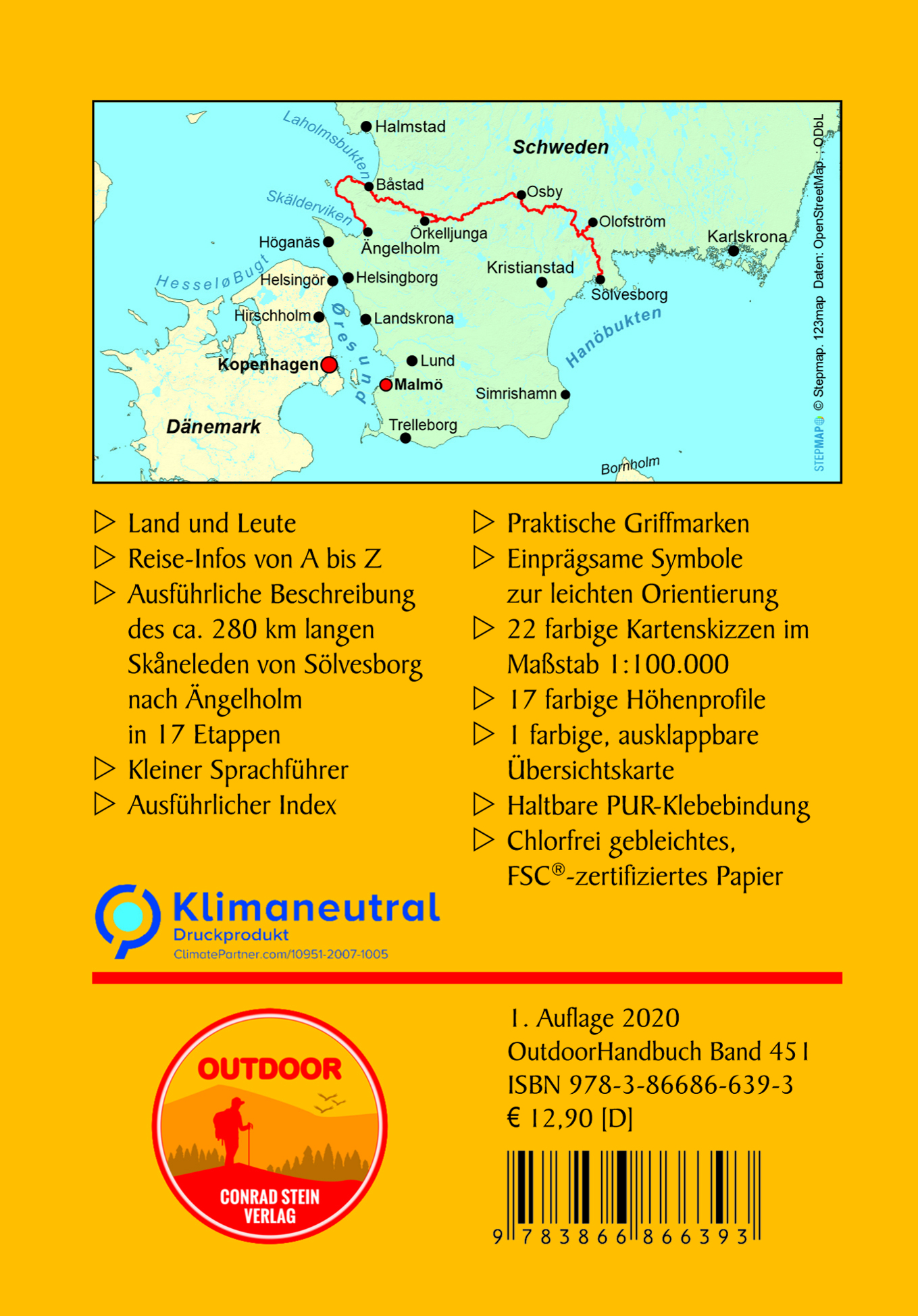 Der Skaneleden - von Küste zu Küste (SL1) ist Teil des Wandernetzwerkes der Provinz Skane (Schonen) in Südschweden. Der erste Abschnitt des ca. 294 km langen Weges führt vom Golf von Sölvesbor durch die Wälder im Norden der Provinz bis zur Bucht von Laholm am Kattegat. Der zweite Abschnitt von Båstad nach Ängelholm ist geprägt von Naturreservaten und kleinen Ortschaften im Küstenbereich. Der Wanderführer liefert eine detaillierte Beschreibung des Weges mit allen wichtigen Informationen. Als Etappenziele wurden vor allem naturnahe Shelterplätze ausgewählt , beschrieben werden aber auch alternative Übernachtungsmöglichkeiten und Etappeneinteilungen. Genaue Karten, Höhenprofile und GPS-Tracks helfen bei der Orientierung.