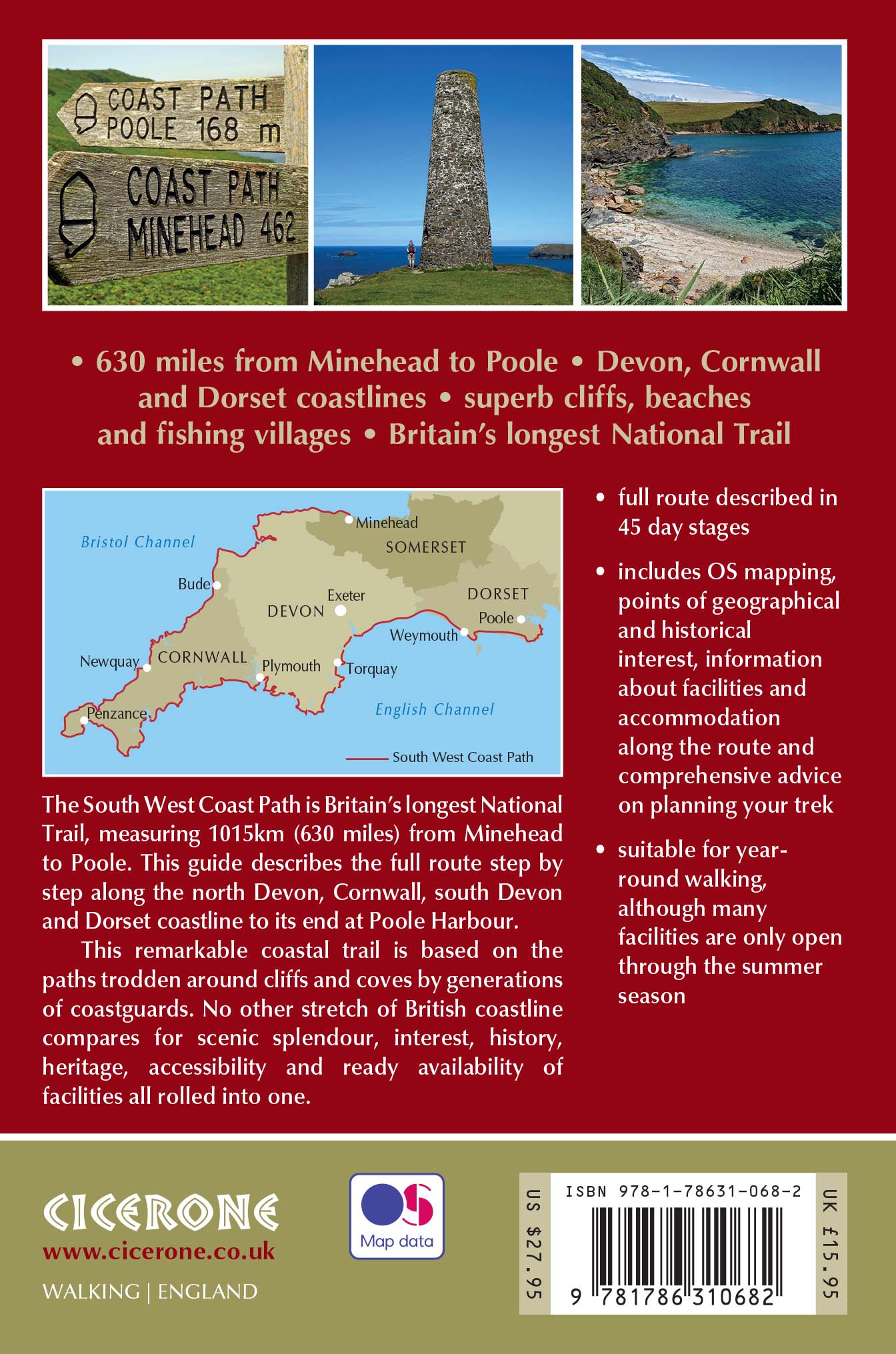 A guidebook to walking the South West Coast Path, a long-distance National Trail from Minehead to Poole, along the north Devon, Cornish, south Devon and Dorset coastline. Covering 1015km (630 miles), this epic route takes in Exmoor National Park and the Jurassic Coast World Heritage Site and takes around 4 weeks to walk.