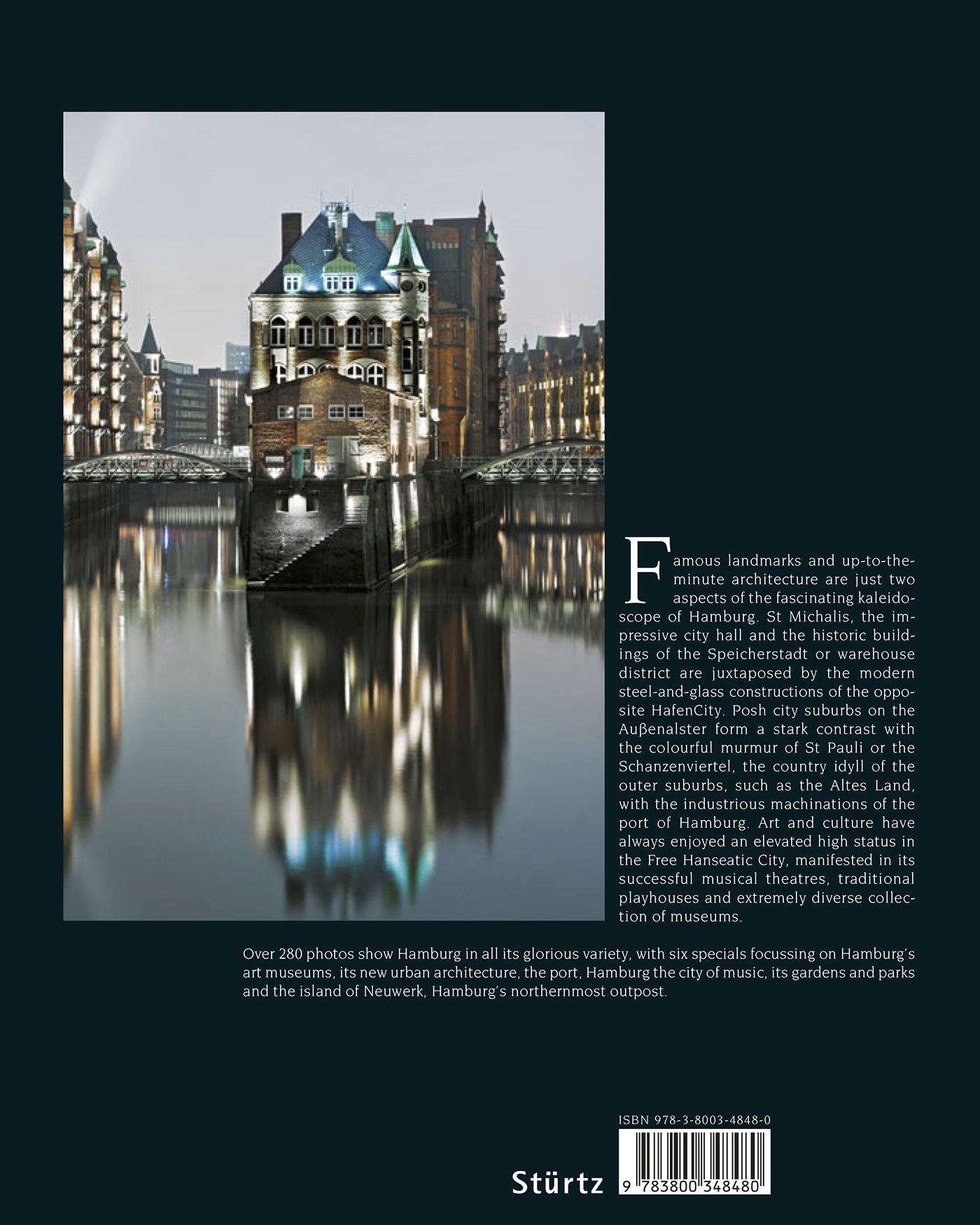 The Hanseatic city of Hamburg boasts both ancient landmarks and cutting-edge architecture: St Michael's, the city hall and the brick stores of the warehouse district jostle for a piece of the limelight with the futuristic edifices of the new HafenCity. The Gründerzeit facades in the suburbs of Eppendorf and Winterhude form an elegant contrast to the brash, world-famous district of St Pauli.Art and culture are writ large at the city's many theatres, museums and musical venues, from the venerable Thalia Theater to the Kunsthalle and Deichtorhallen. You can still your desire for distant horizons and foreign lands at the Port of Hamburg, the largest in Germany and second largest in Europe. Hamburg also has its share of rural idyll in the Altes Land south of the River Elbe.Around 290 photos show the ancient Hanseatic city in all its glorious variety, with few Specials focussing on Hamburg's newest architecture, busy international port, famous St Pauli district and many gardens and parks.Hamburg ist eine Stadt der Gegensätze: Vom pulsierenden Hafen bis in die vornehmen Etagen der eleganten Jugendstil-Kontorhäuser sind es nur wenige Schritte. Am Hamburger Hafen bilden die historischen Speichergebäude architektonische Kontraste mit neuen Wahrzeichen wie der Elbphilharmonie. Hamburgs alte Wahrzeichen - die "Michel" genannte Hauptkirche St. Michaelis mit der Kupfermütze, das verspielte Rathaus im Herzen der Stadt oder die Ruine der Nikolaikirche - stehen neuester Architektur nicht nur in der HafenCity gegenüber.Fein geben sich die Stadtviertel rings um die Außenalster und die Elbvororte. Dazwischen, im Gedränge Ottensens oder des Schanzenviertels, ist das Leben so bunt wie die ganze Welt. Wer Hamburg in Kürze kennenlernen will, braucht kaum mehr als eine Fährfahrt von den Landungsbrücken bis nach Finkenwerder. Hier reihen sich dicht aneinander: die größten Schwimmdocks der Welt, der Fischmarkt, die alten Lotsenhäuser in Övelgönne und vis-à-vis Containerterminals im XXL-Format.St. Pauli zeigt sich seinen Besuchern heute mit einer quirligen Musik- und Festivalszene von seiner attraktiven Seite. Wer es lieber ruhiger mag, der wird dem Charme der ländlichen Stadtteile erliegen: den riesigen Obst- und Gemüsefeldern im Südosten Hamburgs etwa, oder den Hamburger Stadtteilen des Alten Landes südlich der Elbe. Und nicht zuletzt den Walddörfern, deren Lage am Alsterlauf nur mit einem Wort beschreibbar ist: traumhaft. PREMIUM***-Bildband ... ein Bildband mit stabilem Schmuckschuber, fast 3kg Buch - - - professionelle Fotografie von renommierten Reisefotografen - - - Bis zu 400 großformatige Bilder auf 224 Seiten - - - Alle wichtigen Sehenswürdigkeiten - - - Kultur und Traditionen - - - Kenntnis- und umfangreiche Texte - - - Ausführliche Bildunterschriften - - - Viele Spezialthemen - - - Farbige Übersichtskarte - - - Detailliertes Register - - - Ein ideales Geschenk, auch für sich selbst. - Dieser Band ist in gleicher Ausstattung auch in deutscher Sprache lieferbar!