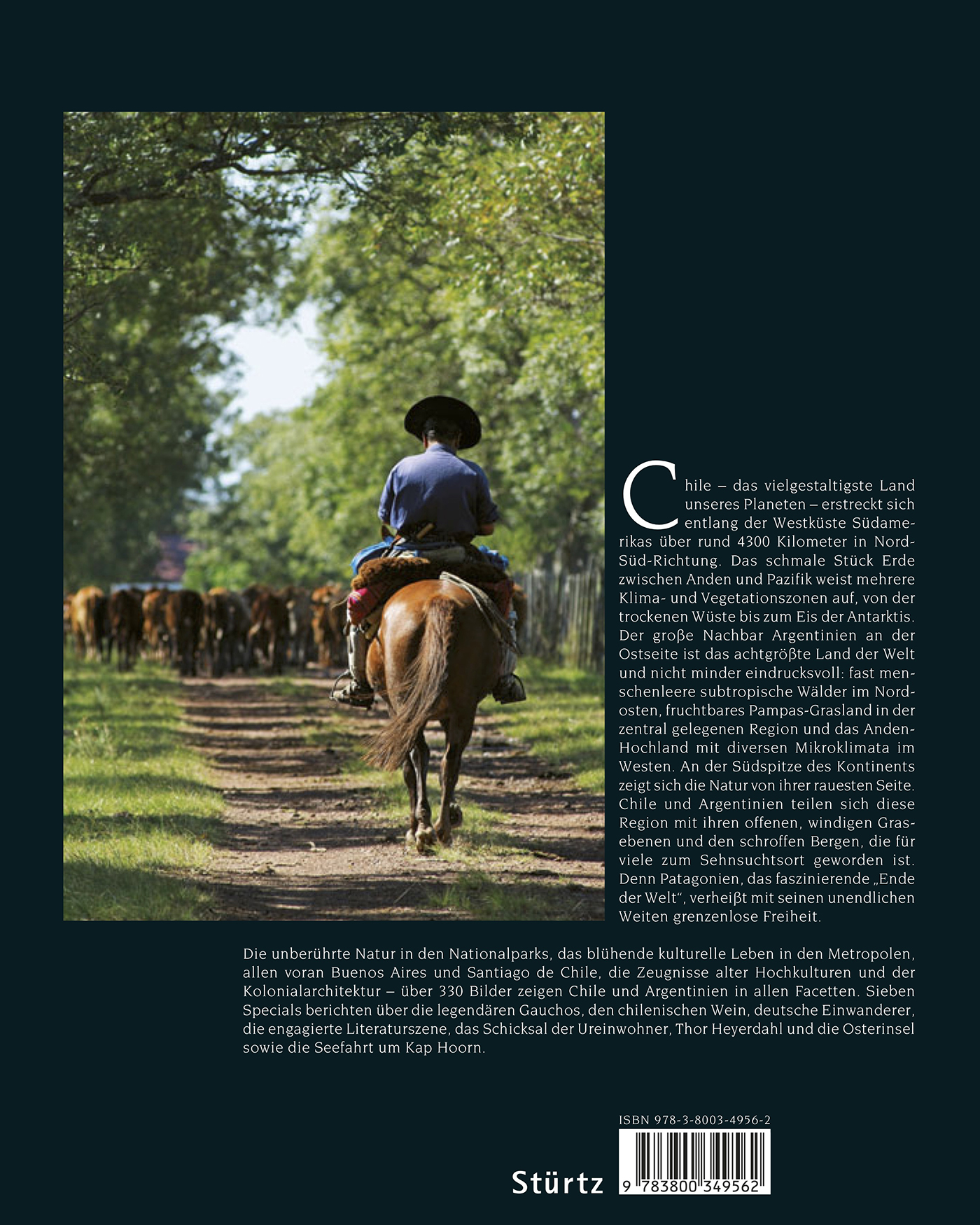 | Schlagworte | Anden • Argentinien • Atacama-Wüste • bariloche • Bildband • Buenos Aires • Chile • Chiloe • Colomé • El Tatio • Feuerland • Humahuaca • Ibera-Sümpfe • Iguazu-Wasserfall • Iquique • Lago Grey • Lago Pehoe • Lauca • Los Glaciares Nationalpark • Patagonien • Pichilemu • Punta Tombo • Reisebildband • Salta • Santiago de Chile • Südamerika • Titicacasee • Torres del Paine • Valle de Elqui |