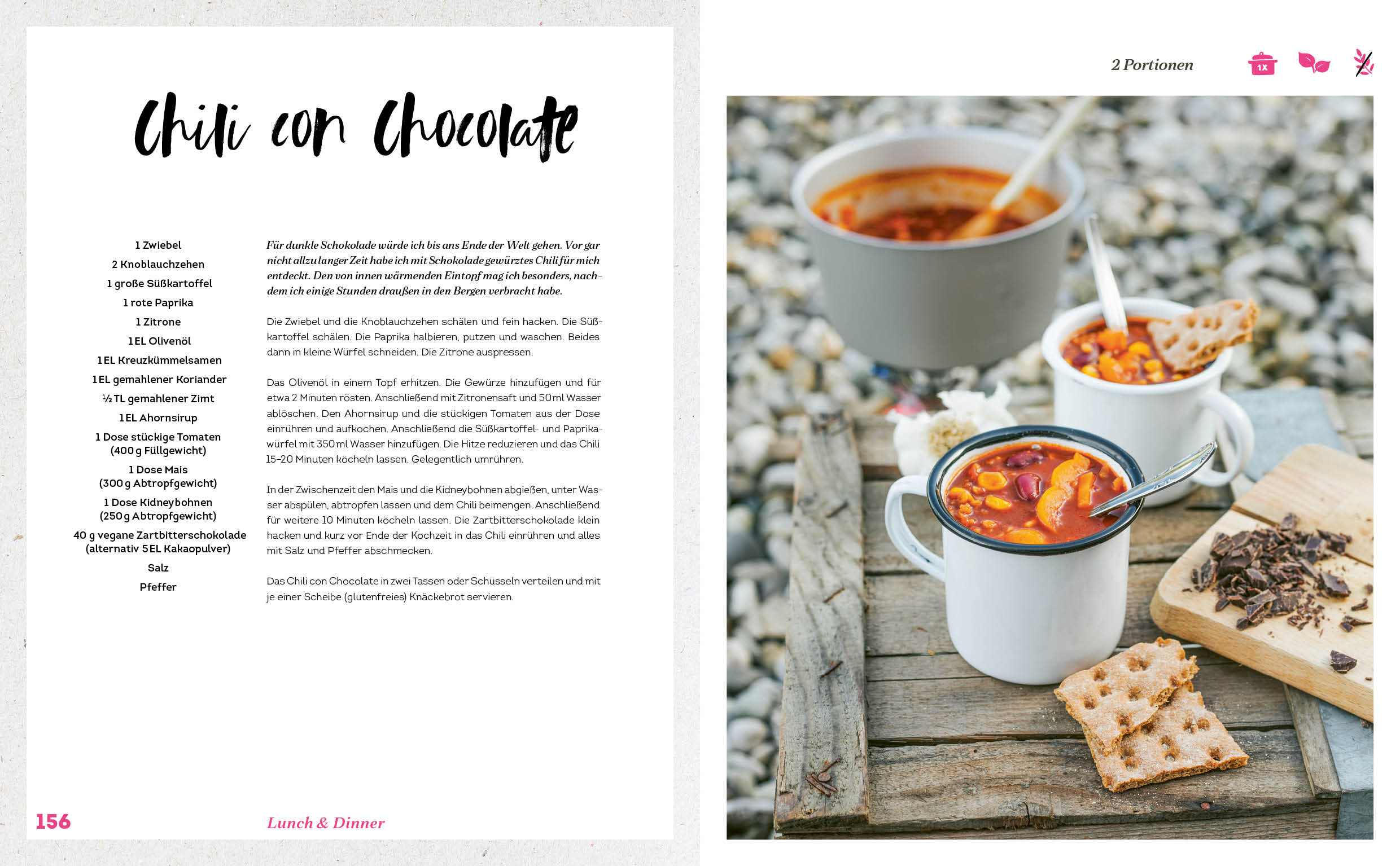 Zelten, Wandern, Reisen - die Welt steht uns offen, egal ob zu Fuß, mit dem Zelt oder dem Camper. Für alle, die gerne auf eigene Faust und mit wenig Gepäck unterwegs sind, bietet das Outdoor-Kochbuch 60 Rezepte für minimalistisches Kochen in freier Natur. Gerichte wie One-Pot-Pasta, Porridge und Chili-Con-Chocolat können ganz bequem vorbereitet und mit wenig Equipment ganz schnell zubereitet werden. Und falls man mal nicht alle Zutaten vor Ort hat, bietet das Buch noch genügend Abwandlungsmöglichkeiten. Viele praktische Tipps für die Outdoor-Küche von den richtigen Vorräten und der Lagerung bis hin zum idealen Equipment runden das Buch ab.
