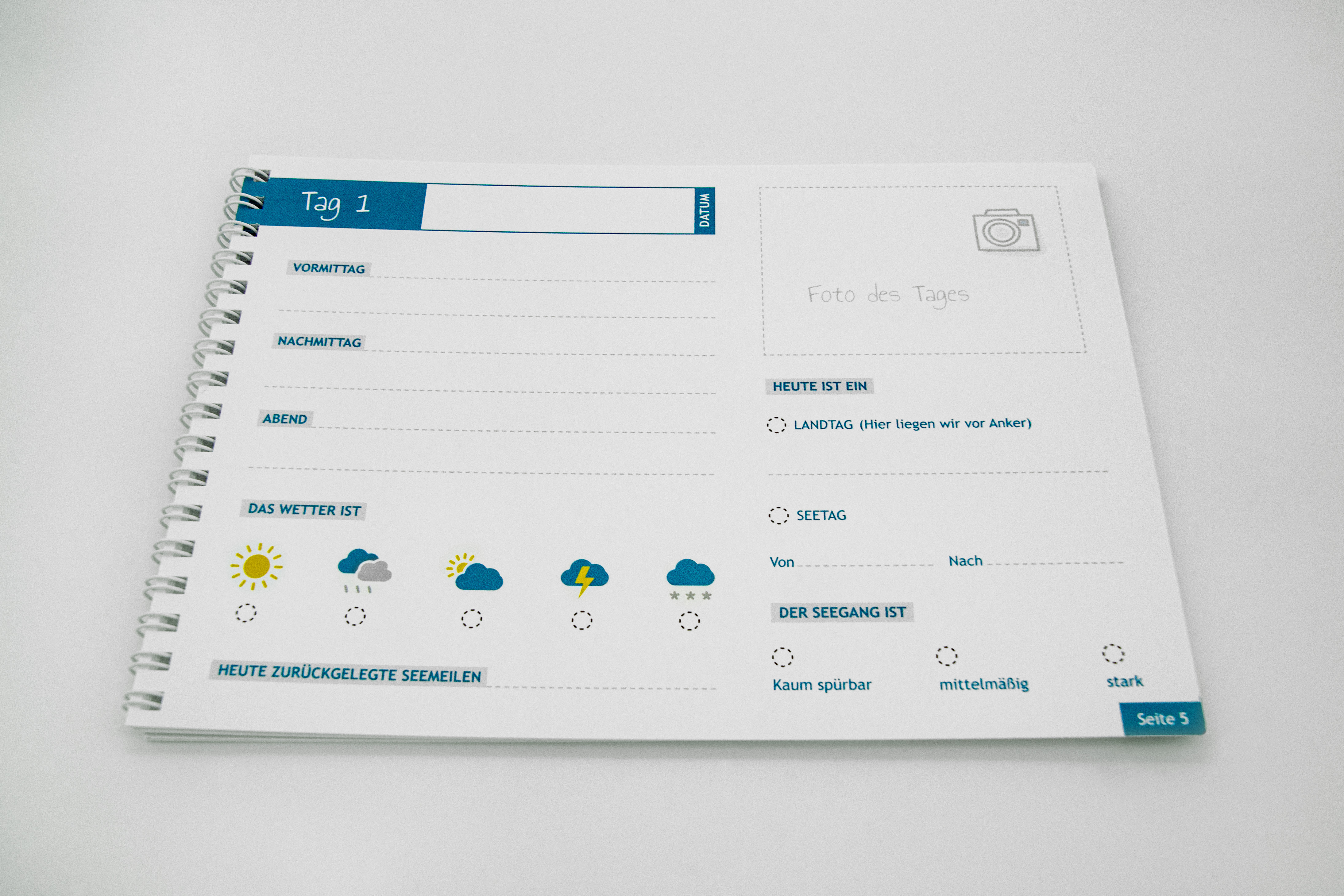 - 30 seitiges Kreuzfahrt Logbuch mit liebevoll gestalteten, maritimen Illustrationen.