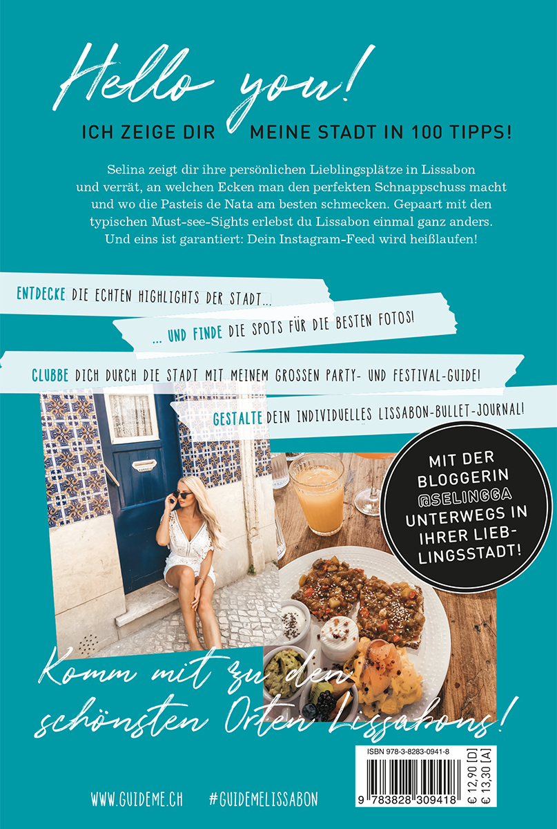 Der Reiseführer einer neuen Generation mit 100 kompakten Tipps. Die Travel-Bloggerin Selina Baaß zeigt dir ihre Lieblingsstadt Lissabon, und verrät an welcher Ecke man den perfekten Schnappschuss macht oder wo die Açai Bowl am besten schmeckt! Gepaart mit den typischen Must-See-Sights erlebst du Lissabon mit diesem Reiseführer einmal ganz anders. Und eins ist garantiert: Dein Instagram-Feed wird heißlaufen! Im modernen Design, mit individuellen Illustrationen und freien Kreativ-Seiten ist der GuideMe Reiseführer Lissabon dabei auch ein echter Hingucker und stylischer Begleiter. > ENTDECKE die echten Highlights der Stadt wie ein Einheimischer > FINDE die besten Spots für die schönsten Fotos > CLUBBE dich durch die Stadt mit dem großen Party- und Festival-Guide > GESTALTE dein individuelles Bullet-Journal auf freien Seiten | Blogger-Tipps | Foto-Hotspots | klassische Sehenswürdigkeiten | Restaurants & Cafés | Shopping | Clubs & Bars | Events & Festivals | Kreativ-Teil zum selber ausfüllen | freie Seiten | Reiseführer mit herausnehmbarer City-Map