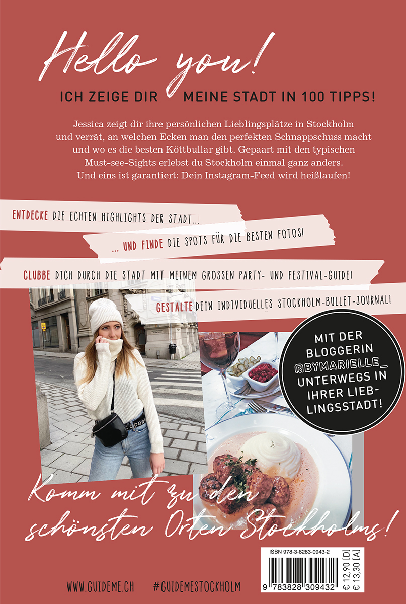Der Reiseführer einer neuen Generation mit 100 kompakten Tipps. Die Travel-Bloggerin Jessica Marielle Bach zeigt dir ihre Lieblingsstadt Stockholm, und verrät an welcher Ecke man den perfekten Schnappschuss macht oder wo die Açai Bowl am besten schmeckt! Gepaart mit den typischen Must-See-Sights erlebst du Stockholm mit diesem Reiseführer einmal ganz anders. Und eins ist garantiert: Dein Instagram-Feed wird heißlaufen! Im modernen Design, mit individuellen Illustrationen und freien Kreativ-Seiten ist der GuideMe Reiseführer Stockholm dabei auch ein echter Hingucker und stylischer Begleiter. > ENTDECKE die echten Highlights der Stadt wie ein Einheimischer > FINDE die besten Spots für die schönsten Fotos > CLUBBE dich durch die Stadt mit dem großen Party- und Festival-Guide > GESTALTE dein individuelles Bullet-Journal auf freien Seiten | Blogger-Tipps | Foto-Hotspots | klassische Sehenswürdigkeiten | Restaurants & Cafés | Shopping | Clubs & Bars | Events & Festivals | Kreativ-Teil zum selber ausfüllen | freie Seiten | Reiseführer mit herausnehmbarer City-Map
