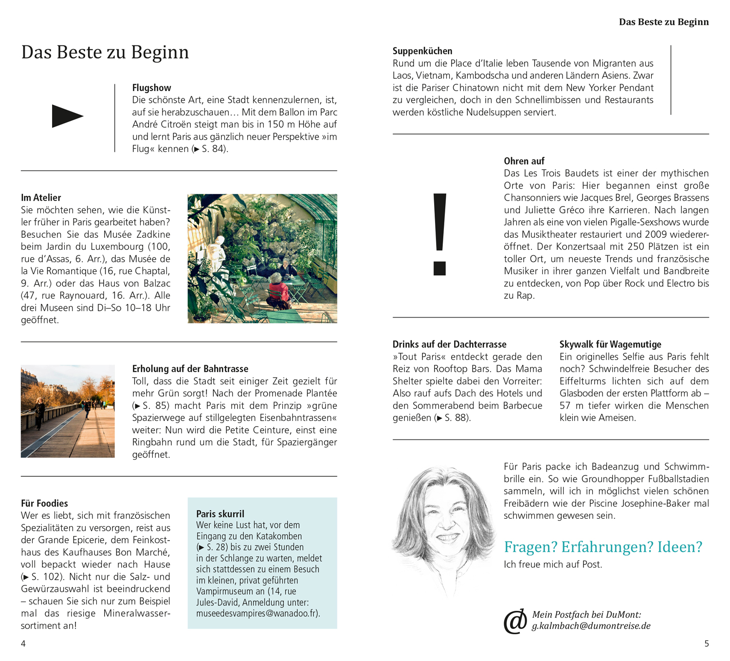 lt;p>Das Beste zu Beginn. Das ist Paris. Paris in Zahlen. Was ist wo? Augenblicke. Ihr Paris-Kompass: 15 Direktkapitel. Pariser Museumslandschaft. Noch mehr Kunst. Aus Paris wird Grand Paris. Das royale Paris - Versailles. Pause - einfach mal abschalten. In fremden Betten. Satt & glücklich. Stöbern & entdecken. Wenn die Nacht beginnt. Hin & weg. O-Ton Paris. Kennen Sie die?