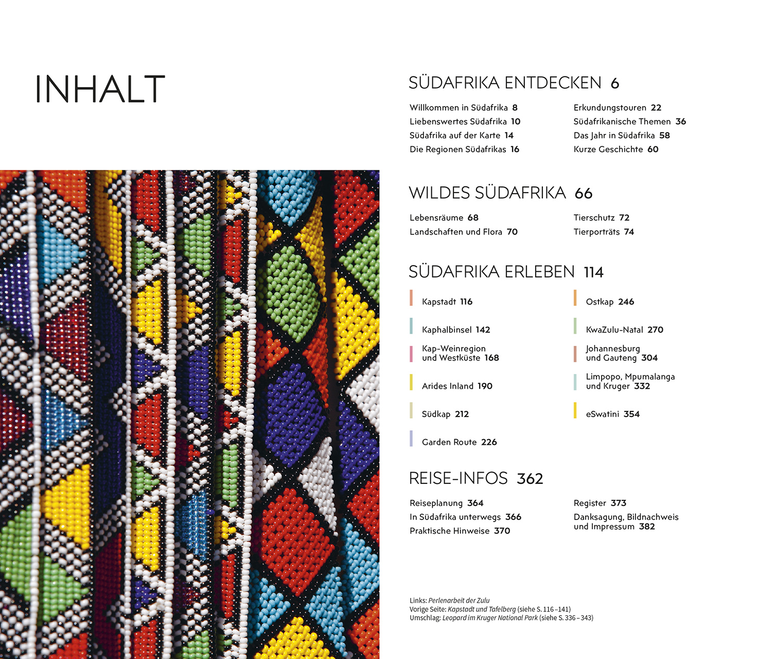 Die schönsten Regionen: Die fabelhaftesten Gegenden stellen sich Ihnen im Reiseführer Südafrika in ihrer gesamten Pracht vor mit fundierten und qualitativen Inhalten sowie unvergesslichen Highlights aus Kultur und Alltag. Von der wilden Region Limpopo, Mpumalanga und Kruger mit dem Kruger National Park an der Grenze zu Mosambik über KwaZulu-Natal, mit spektakulärer Landschaft wie den hohen Gipfeln der Drakensberge bis zur Kaphalbinsel, die am südlichsten Punkt am Kap der guten Hoffnung endet. Nicht zu vergessen die pulsierenden Städte Johannesburg und Kapstadt, die mit bunten Märkten, eindrucksvollen Museen zur Geschichte der Apartheid sowie trendigen Restaurants und einem vibrierenden Nachtleben aufwarten.