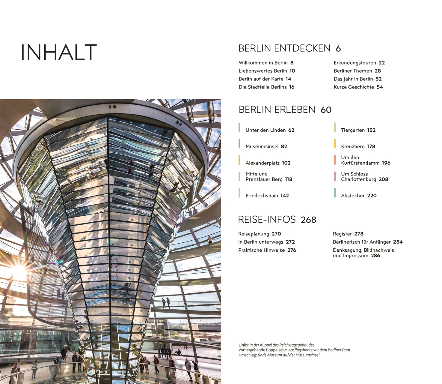 Handgezeichnete 3-D-Aufrisszeichnungen: Absolute Highlights eröffnen die Stadtteilkapitel. Das Besondere: Statt sie nur zu beschreiben, werden sie in diesem Berlin-Reiseführer großzügig in Szene gesetzt mit sensationellen 3-D-Aufrisszeichnungen, die jedes Detail aus der Vogelperspektive zeigen. Sie bieten ganz neue und einmalige Einblicke in Berlins Sehenswürdigkeiten vom Berliner Dom bis zur Marienkirche.