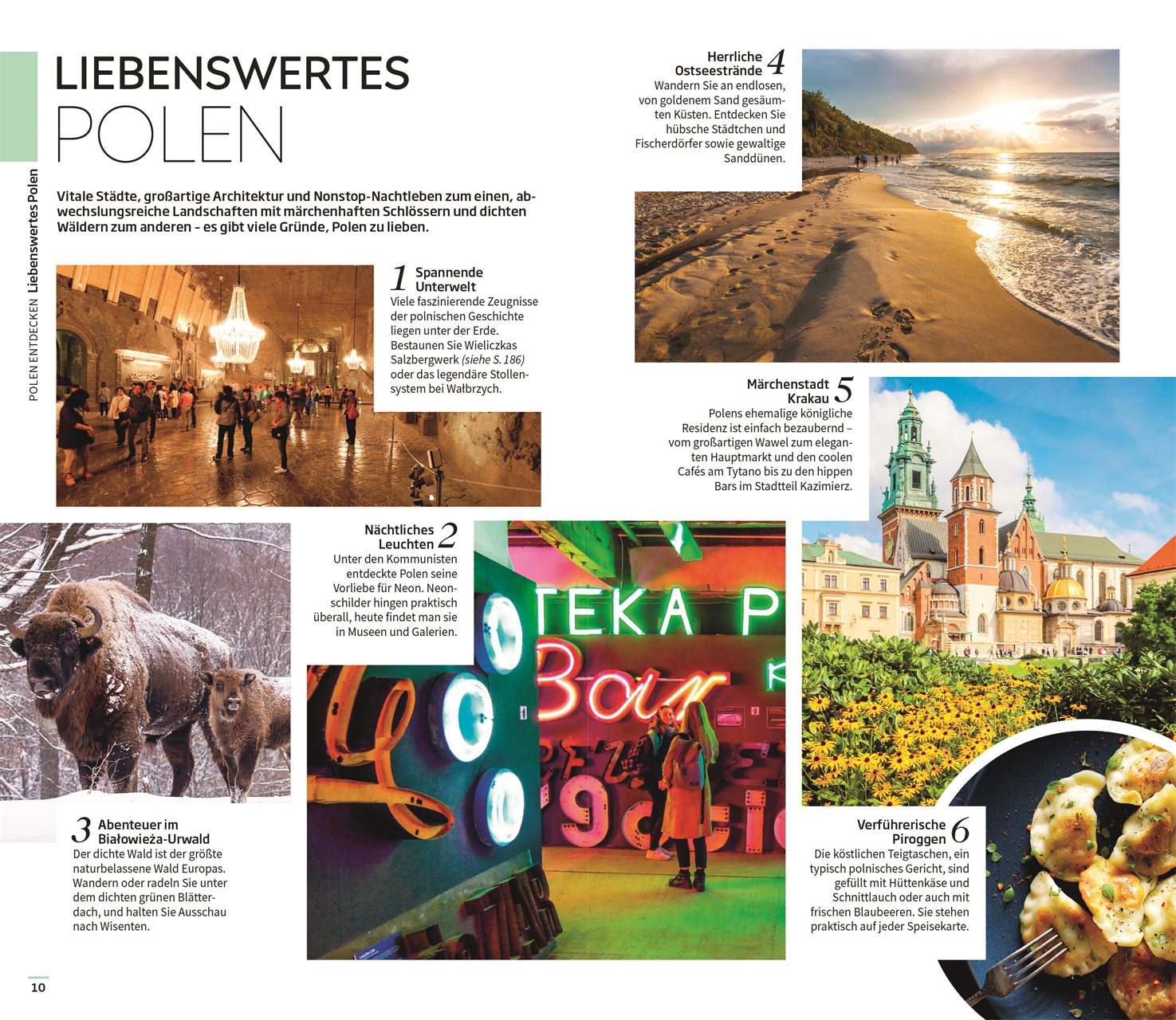 Ausgewählte Top-Themen: Auf den bildgewaltigen Themenseiten des Polen-Reiseführers stehen charakteristische Besonderheiten im Fokus. Entdecken Sie Polens atemberaubende Landschaften in 23 Nationalparks, prächtige Paläste und trutzige Festungsanlagen sowie die enorme Vielfalt der polnisc