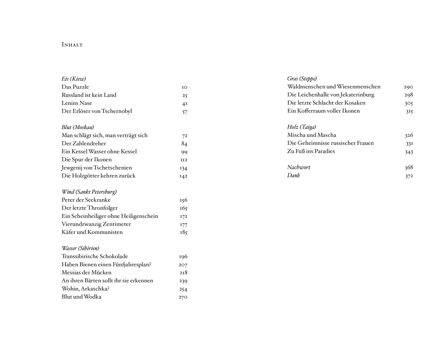 Fast ein Jahr lang reist Jens Mühling durch Russland und porträtiert aus ganz persönlicher Perspektive eine Gesellschaft, deren Lebensgewohnheiten, Widersprüche, Absurditäten und Reize hierzulande nach wie vor wenigen vertraut sind. Auf seiner Reise erlebt er unglaubliche Begegnungen: Eine Einsiedlerin in der Taiga, die erst als Erwachsene erfahren hat, dass es jenseits der Wälder eine Welt gibt. Ein Mathematiker, der tausend Jahre der russischen Geschichte für erfunden hält. Ein Priester, der in der atomar verseuchten Sperrzone von Tschernobyl predigt. Ihre Lebensgeschichten fügen sich zu einem faszinierenden Porträt der russischen Seele.