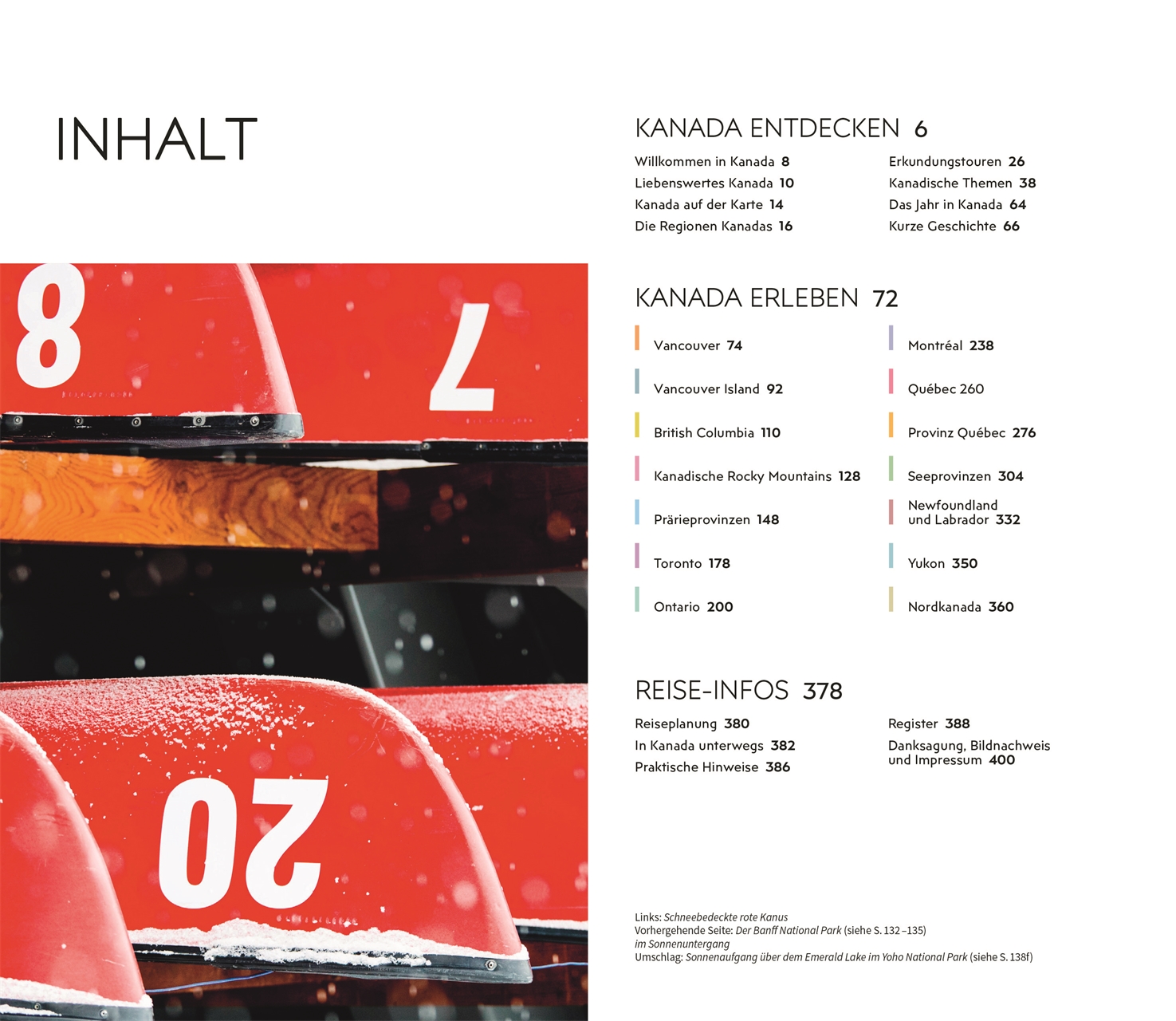 Kanada wartet auf Sie: Lassen Sie sich mit dem praktischen und informativen Kanada-Reiseführer zu den schönsten Erlebnissen, Attraktionen und Sehenswürdigkeiten Kanadas führen ob faszinierende Polarlichter am Yukon erblicken, auf einer Zugreise mit dem Rocky Mountaineer die schneebedeckten Gipfel der Rockies bestaunen, den spektakulären Cabot Trail entlangwandern, in Toronto das Royal Ontario Museum besuchen oder in Montréal französische Kultur entdecken.