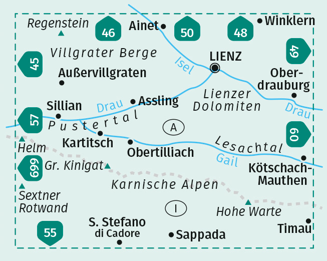 | Schlagworte | Führer • Karnischer Höhenweg • Karte • Kompass • Lesachtal • Lienzer Dolomiten • Osttirol • Outdoor • Rad • reißfest • Route • Skitouren • Tour • Trekking • Wanderbuch • Wanderführer • Wanderkarte • Wandern • Wanderroute • Wandertour • Wanderung • Wanderweg • wetterfest • WK 47 |