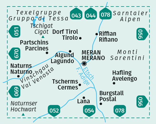 | Schlagworte | Bike • Escursioni • Führer • Karte • Kompass • Meran • Merano • Outdoor • Rad • reißfest • Route • Skitouren • Tour • Trekking • Wanderbuch • Wanderführer • Wanderkarte • Wandern • Wanderroute • Wandertour • Wanderung • Wanderweg • wetterfest • WK 053 |
