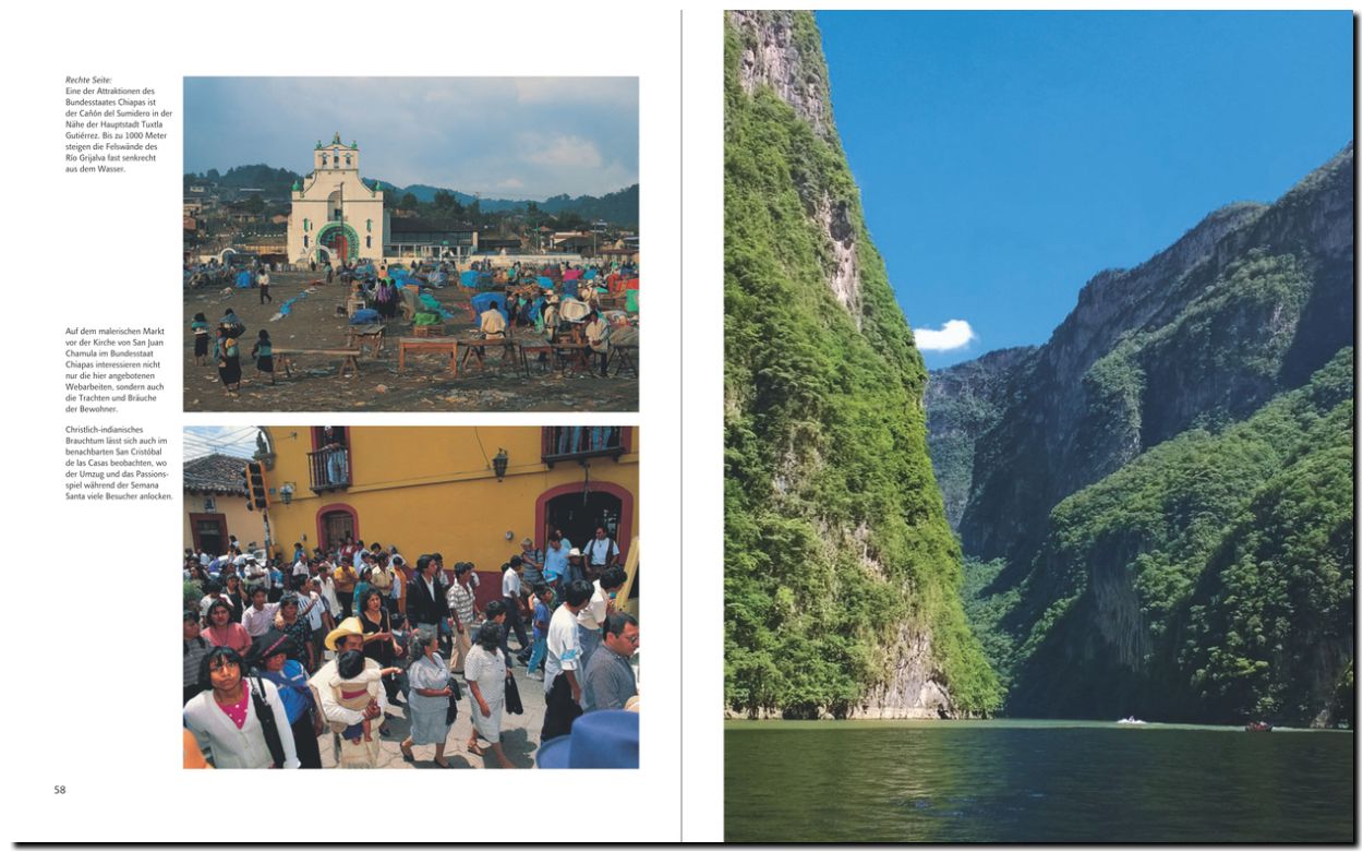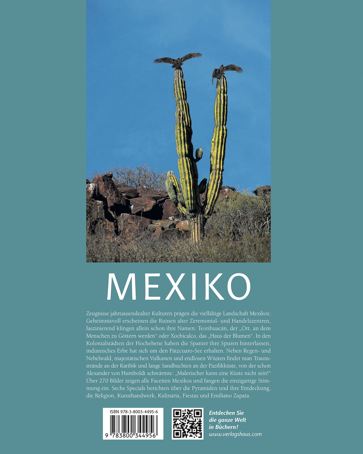 Über 270 Bilder zeigen alle Facetten Mexikos und fangen die einzigartige Stimmung ein. Sechs Specials berichten über die Pyramiden und ihre Entdeckung, die Religion, Kunsthandwerk, Kulinaria, Fiestas und Emiliano Zapata.