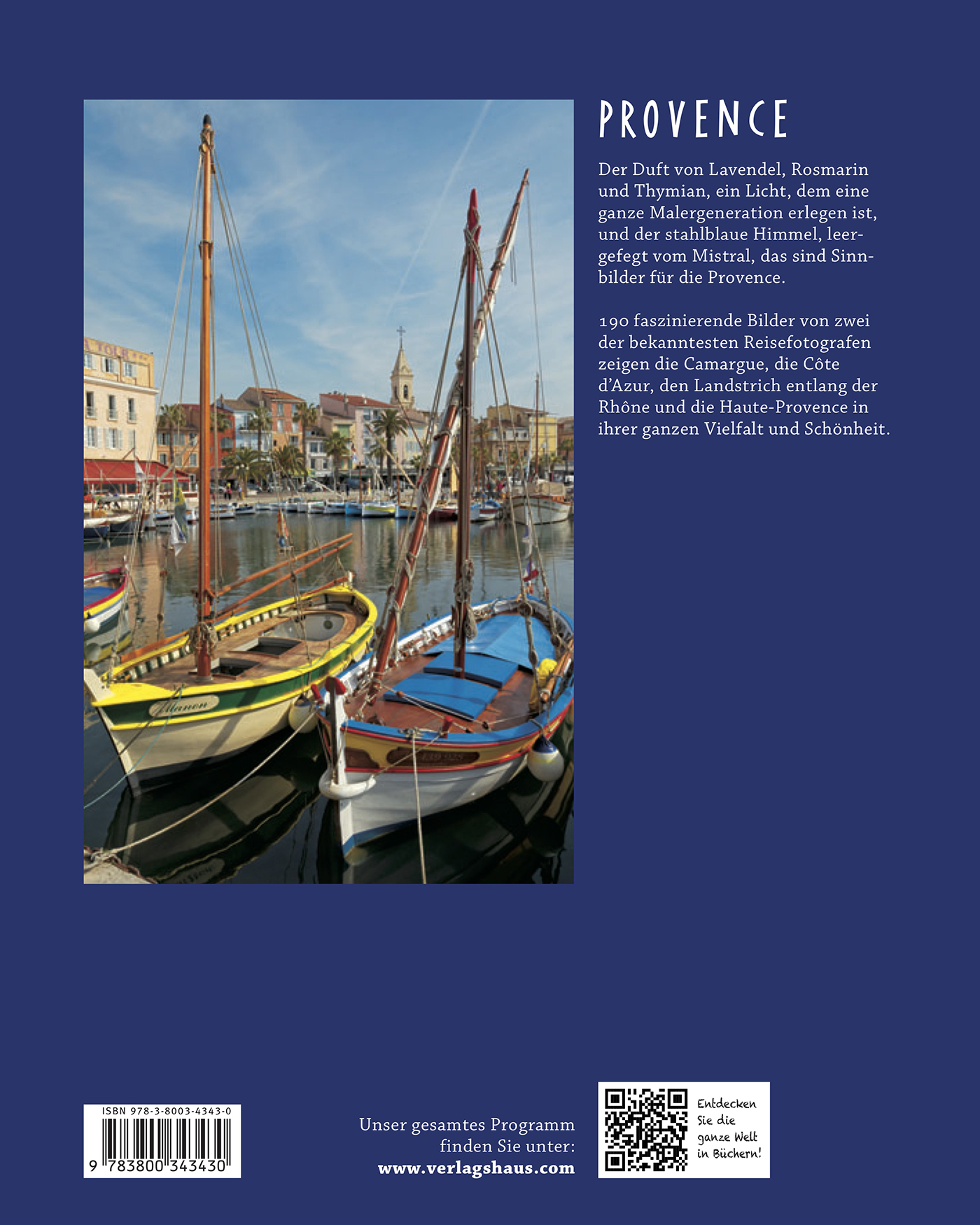 | Schlagworte | Aigues-Mortes • Aix en Provence • Alpilles • Arles • Avignon • Bildband • Bonnieux • Camargue • Cannes • Cassis • Europa • Frankreich • Gorges de l'Ardeche • Grand Canon du Verdon • Les-Saintes-Maries-de-la-Mer • Marseille • Montagne Sainte-Victoire • Mont Ventoux • Nimes • Nizza • Orange • Pont du Gard • Provence • Reisebildband • Rhone • Saint-Tropez • Vaison-la-Romaine • Vaucluse • Vence |
