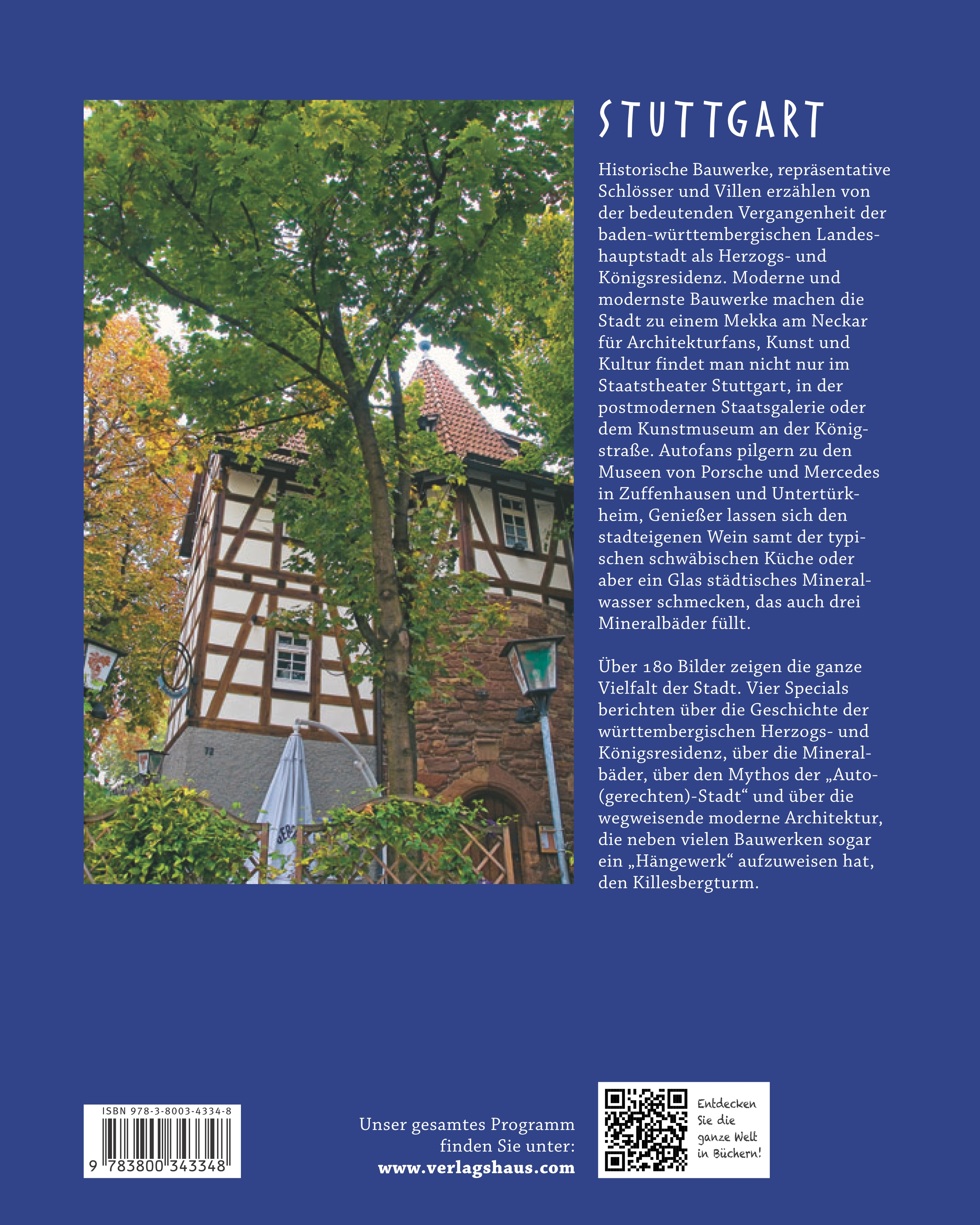 | Schlagworte | Alte Kanzlei • Altes Schloss • Baden-Württemberg • Bildband • Calwer Straße • Degerloch • Deutschland • Fernsehturm • Grabkapelle • Hauptbahnhof • Hochschule für Musik und Darstellende Kunst • Jubiläussäule • Karlsplatz • Königsbau • Königsstraße • Kunstmuseum • lapidarium • Marktplatz • Mercedes-Benz-Museum • Mineralbad Berg • Neckar • Neues Schloss • Porschemuseum • Reisebildband • Rosensteinpark • Staatsgallerie • Stuttgart • Uhlbach • Untertürkheim • Zuffenhausen |