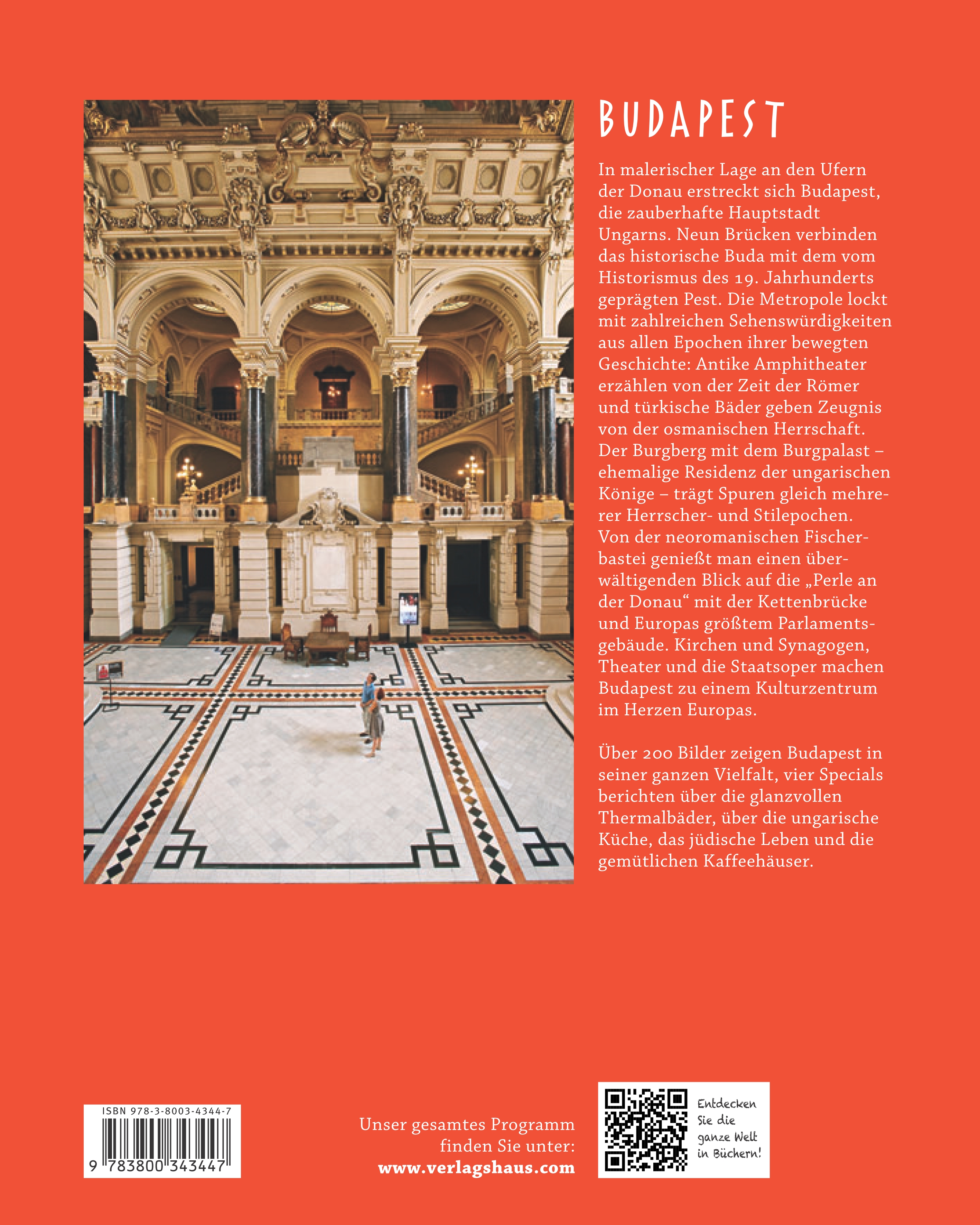 "Womöglich die eleganteste Stadt Europas", urteilte Thomas Mann einmal über die Donaumetropole. Für viele Ungarn ist sie schlicht "die Stadt". Budapest mangelt es nicht an Liebhabern aus akker Welt, die nicht nur von seiner einzigartigen Lage fasziniert sind. Die bewaldeten Höhen und felsigen Höhen auf der Budaer Seite muten noch mitteleuropäisch an. Doch von da blickt man hinab auf die Ebene von Pest mit ihrem Häusermeer, wo sich die scheinbar unendliche Weite der Puszta ankündigt. Dazwischen strömt majestätisch die Donau mit ihren Brücken - dieses Panorama bietet einen unvergleichlichen Anblick, erst recht im nächtlichen Lichterglanz.Budapest ist auch eine Stadt der Konstraste: auf der einen Seite des Flusses das mitteralterlich geprägte, hoch gelegene Burgviertel mit engen, romantischen Gassen, auf der anderen Seite das im 19. und 20. Jahrhundert entstandene großstädtische Budapest mit weiten Ringstraßen und großen Plätzen. Gleichermaßen beeindruckend ist das Kulturangebot diesseits und jenseits der Donau. Und für das körperliche Wohbefinden sorgen die glanzvollen Thermalbäder ebenso wie die traditionsreichen Kaffeehäuser.Über 200 Bilder zeigen Budapest in all seinen Facetten, vier Specials berichten über türkische Dampfbäder und Jugendstilthermen, über die kulinarischen Spezialitäten, die man hier genießen kann, über das jüdische Leben und über die Kaffeehäuser als Orte des kulturellen Austauschs.REISE DURCH ... ist eine Bildband-Reihe professionell fotografiert von renommierten Reisefotografen - - - Bis zu 230 Bilder auf 128 bis 140 Seiten - - - Sensationell günstiger Preis - - - Alle wichtigen Sehenswürdigkeiten - - - Kultur und Traditionen - - - Kenntnisreiche Texte - - - Ausführliche Bildunterschriften - - - Farbige Übersichtskarte - - - Detailliertes Register