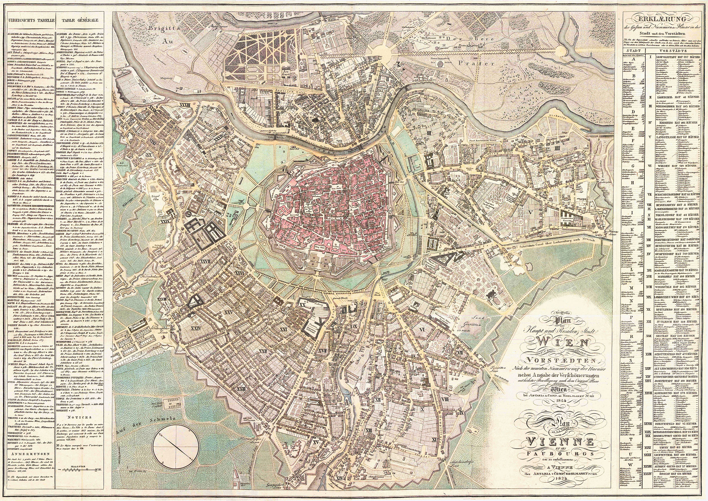 "Neuester Plan der Haupt und Residenz Stadt Wien und dessen Vorstädten nach der neuesten Nummerierung der Häuser nebst Angabe der Verschönerungen.