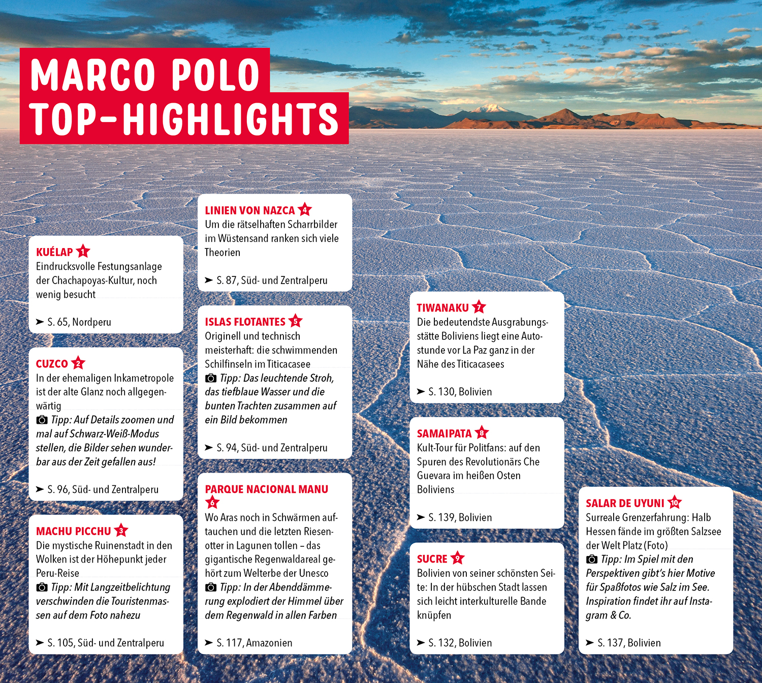 - Abenteuer in der Natur oder Feiern in den Straßen? Die MARCO POLO Insider-Tipps zeigen dir Peru und Bolivien abseits des Mainstreams