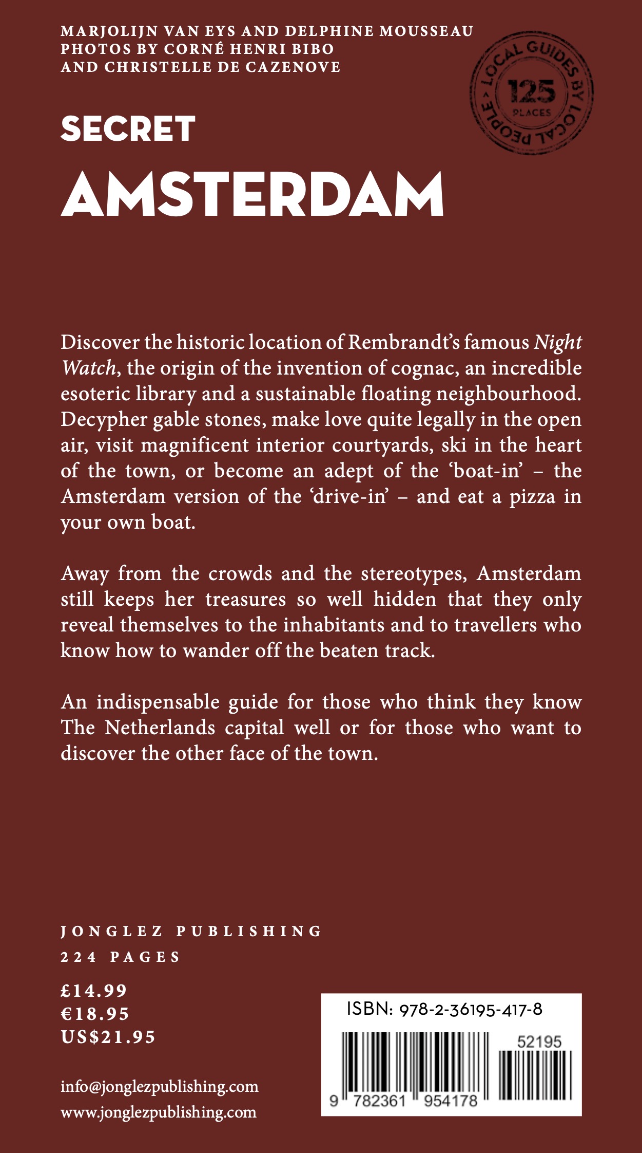 Step off the beaten track with this fascinating Amsterdam travel guide book and let our local experts show you the well-hidden treasures of an amazing city. Ideal for local inhabitants, curious visitors and armchair travellers alike. The places included in our guides are unusual and unfamiliar, allowing one to step off the beaten track.