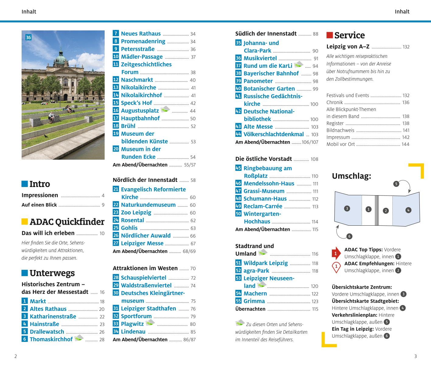 Hinweis zur OptimierungImpressumAnleitung zur eBook-NutzungSymbole AllgemeinADAC Top TippsADAC EmpfehlungenEin Tag in LeipzigImpressionen aus LeipzigAuf einen BlickUnterwegsLeipzig von A-ZFestivals und EventsChronikMobil vor OrtÜbersichtskarten