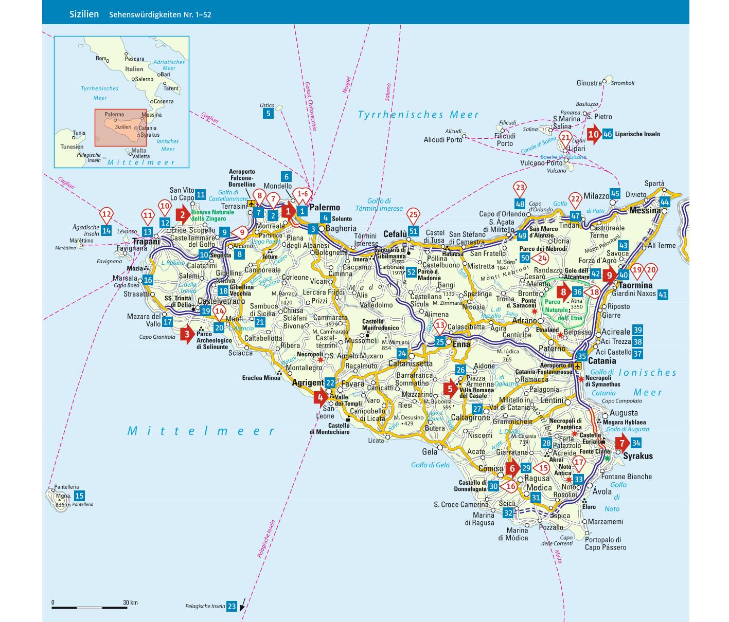 | Schlagworte | Aci Castello • Acireale • Agrigent • Äolische Inseln • Ätna • Aussichtspunkte • Camilleri • Capo San Vito • Catania • Cefalù • Erice • Ferien • Feste • Freizeit • Geschichte • Gibellina • Goethe • Hoteltipps • Insidertipps • Isole Eolie • Italien • Kirchen • Kultur • Kunst • Landschaften • Madonie • Mandelblüte • Märkte • Marsala • Messina • Monreale • Monte Pellegrino • Museen • Orangen • Palermo • Pirandello • Ragusa • Reise • Reiseführer • Restauranttipps • Salinen • Segesta • Sehenswürdigkeiten • Selinunt • Sizilien • Stromboli • Syrakus • Taormina • Tempel • Top Tipps • Unesco-Weltkulturerbe • Urlaub • Urlaubstipps • Ustica • Villa Romana del Casale • Vulkan • Wandern • Wassersport • Wein • Zitronen |