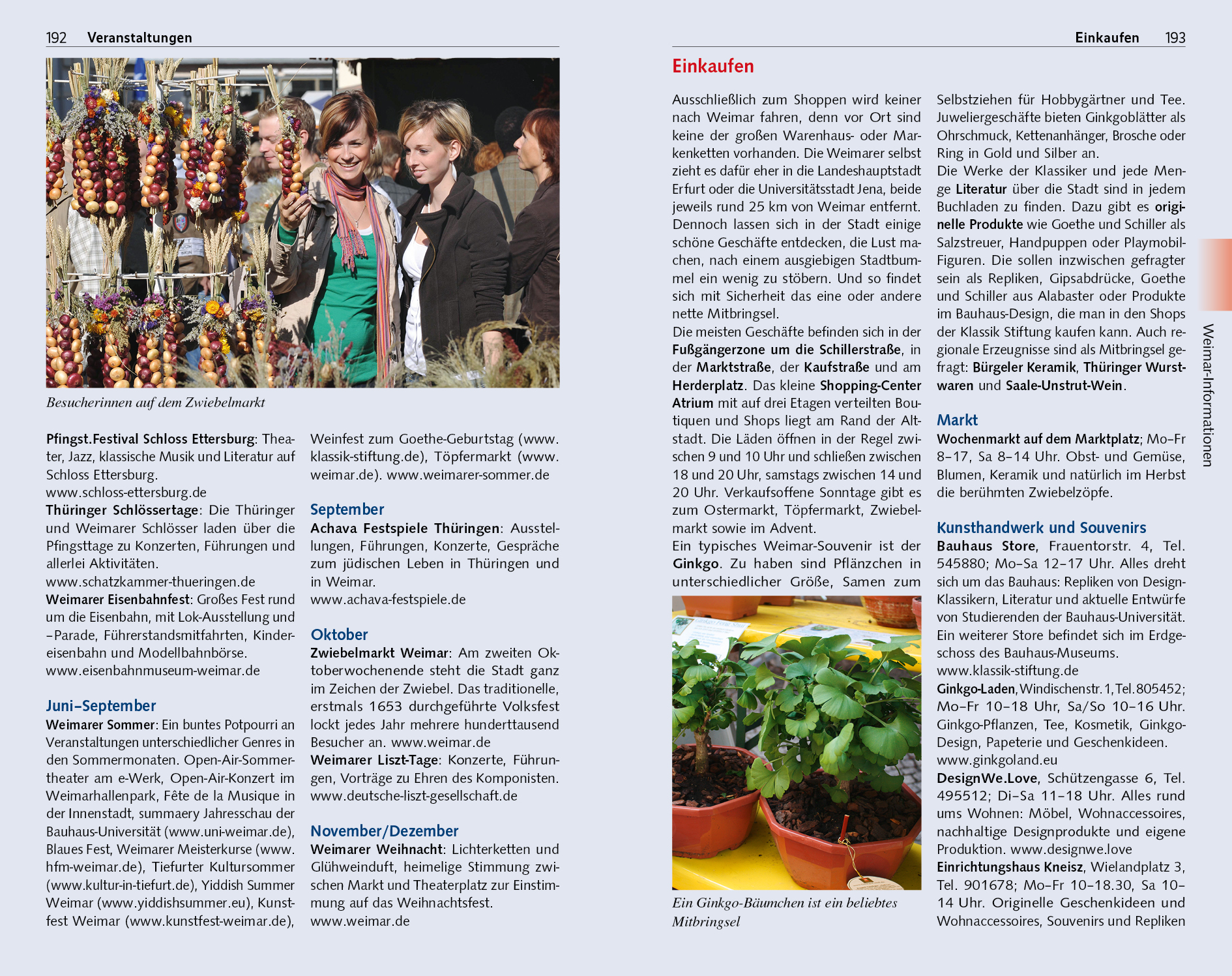 | Schlagworte | Anna Amalia Bibliothek • Apolda • Bad Berka • Bauhaus • Buchenwald • Deutsches Nationaltheater • Empfehlungen • Goethe • Herzogin-Anna-Amalia-Bibliothek • Hohenfelden • Ilmtal-Radweg • Reisetipps • Schiller • Städteführer • Städtereise • Stadtführer • Studienreise • Thüringen • Tiefurt • Trescher-Reiseführer • Trescher Verlag • UNESCO-Welterbe • Unterkunft • Weimarer Klassik • Weimarer Republik |