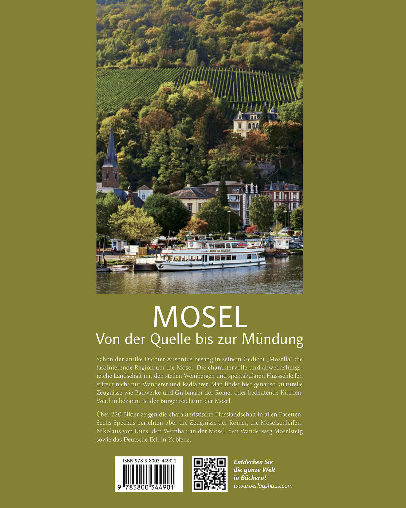 | Schlagworte | Beilstein • Bernkastel • Bernkastel-Kues • Bildband • Bremer Calmont • Bremm • Calmont • Cochem • Col de Bussang • Deutsches Eck • Deutschland • Eifel • Erden • Frankreich • Graach • Hunsrück • Karl Marx • Klausen • Koblenz • Kröv • Lösnich • Luxemburg • Metz • Mosel • Mosella • Moselradweg • Müller-Thurgau • Nancy • Reil • Reisebildband • Rhein • Rheinland-Pfalz • Riesling • Schengen • Thionville • Traben-Trabach • Treis-Kaden • Trier • Ürzig • Vogesen • Wein • Wittlich • Zell • Zeltingen-Rachtig |