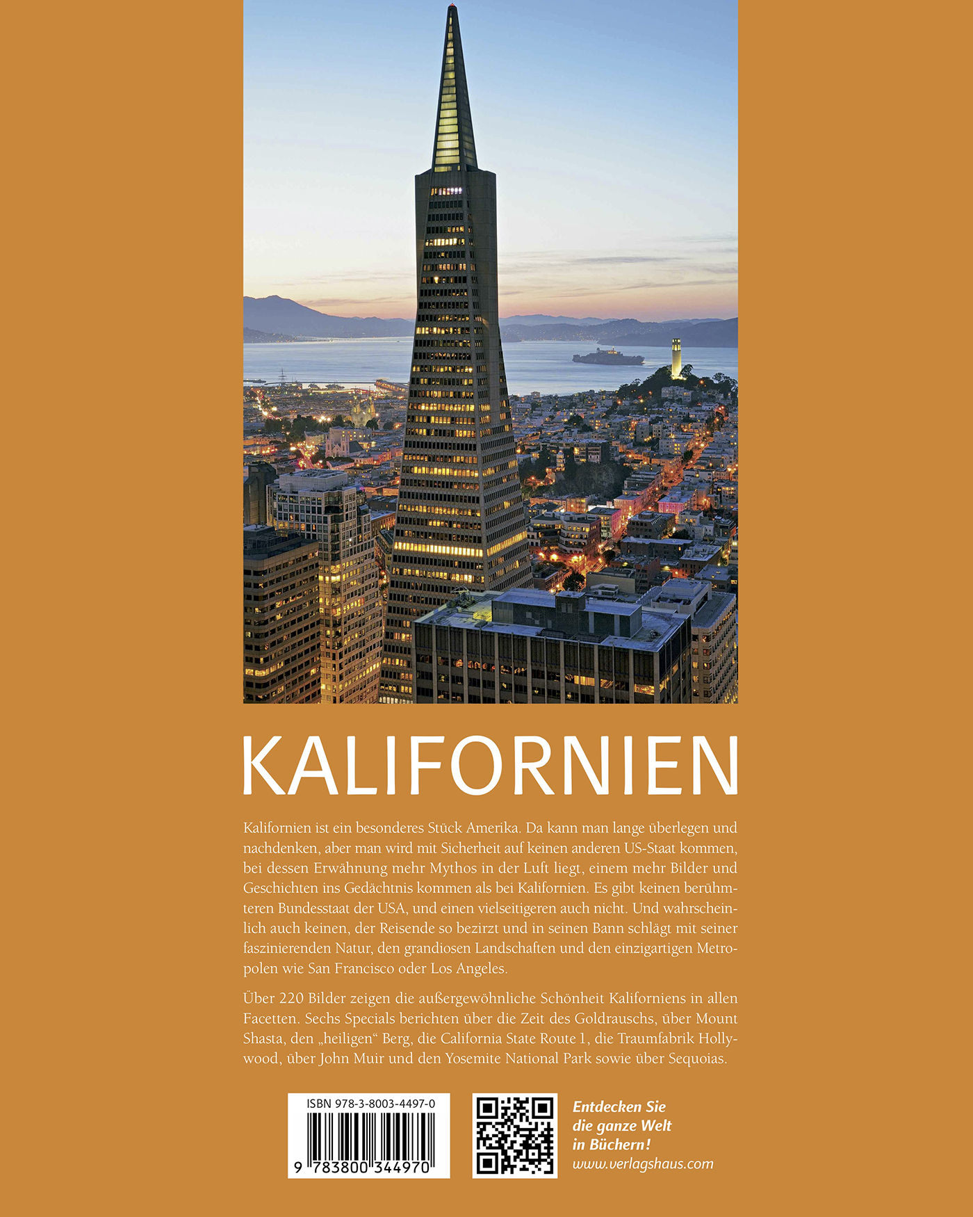 | Schlagworte | Amerika • Anza-Borrego Desert State Park • Big Sur • Bildband • Death-Valley-Nationalpark • Hollywood • Humboldt Redwoods State Park • Joshua-Tree-Nationalpark • Kalifornien • Kings-Canyon-Nationalpark • Lassen-Volcanic-Nationalpark • Los Angeles • Mendocino • Monterey • Monument Valley • Napa Valley • Oceano • Palm Springs • Peninsula • Reisebildband • San Diego • San Francisco • Sanoma Valley • San Simeon • Santa Barbara • Santa Monica • Sequoia-Nationalpark • USA • Venice Beach • Yosemite-Nationalpark |