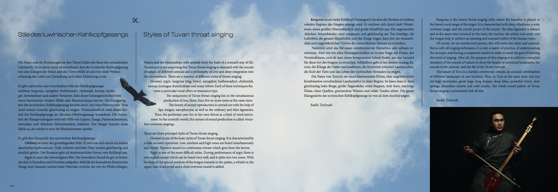 Otto Mänchen-Helfen war 1927 einer der ersten Westeuropäer, der nach Tuva reiste und ein Buch schrieb: „Reise in das asiatische Tuva“. Zu dieser Zeit war es mehr als schwierig, dorthin zu reisen: „Ich besuchte tausend Orte und Büros, erhielt Zertifikate, Stempel, Unterschriften, Bestätigungen, füllte die hundert Abschnitte der Fragebögen aus, wie z.B. 2019 reiste ich als Autor ohne Probleme über Moskau und Abakan auf seinen Spuren nach Tuva, um meine Kenntnisse zu vertiefen, die aus 22 Jahren Zusammenarbeit mit dem Musikensemble Huun Huur Tu stammen.