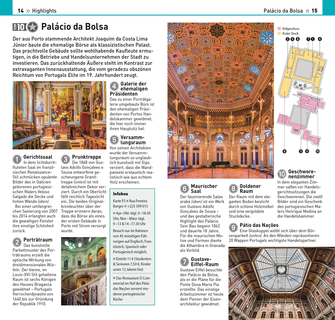 Top 10 Reiseführer Porto Ihr kompakter Begleiter zu den interessantesten Orten der zweitgrößten Stadt Portugals mit den wichtigsten Top-10-Highlights und vielen praktischen Top-10-Listen zur schnellen und einfachen Orientierung vor Ort. Im Porto-Reiseführer bekommen Sie einen perfekten Überblick zu Portos Sehenswürdigkeiten, Museen, Kirchen, Parks, Stadtteilen, zu den besten Shops, Restaurants und Cafés. Außerdem im Top 10 Reiseführer Porto: Geheimtipps zu unbekannten Orten, kostenlose Attraktionen, anschauliche Stadtteilkarten, Extrakarte und visueller Kulinarik-Sprachführer zum Herausnehmen. Erleben Sie Porto!