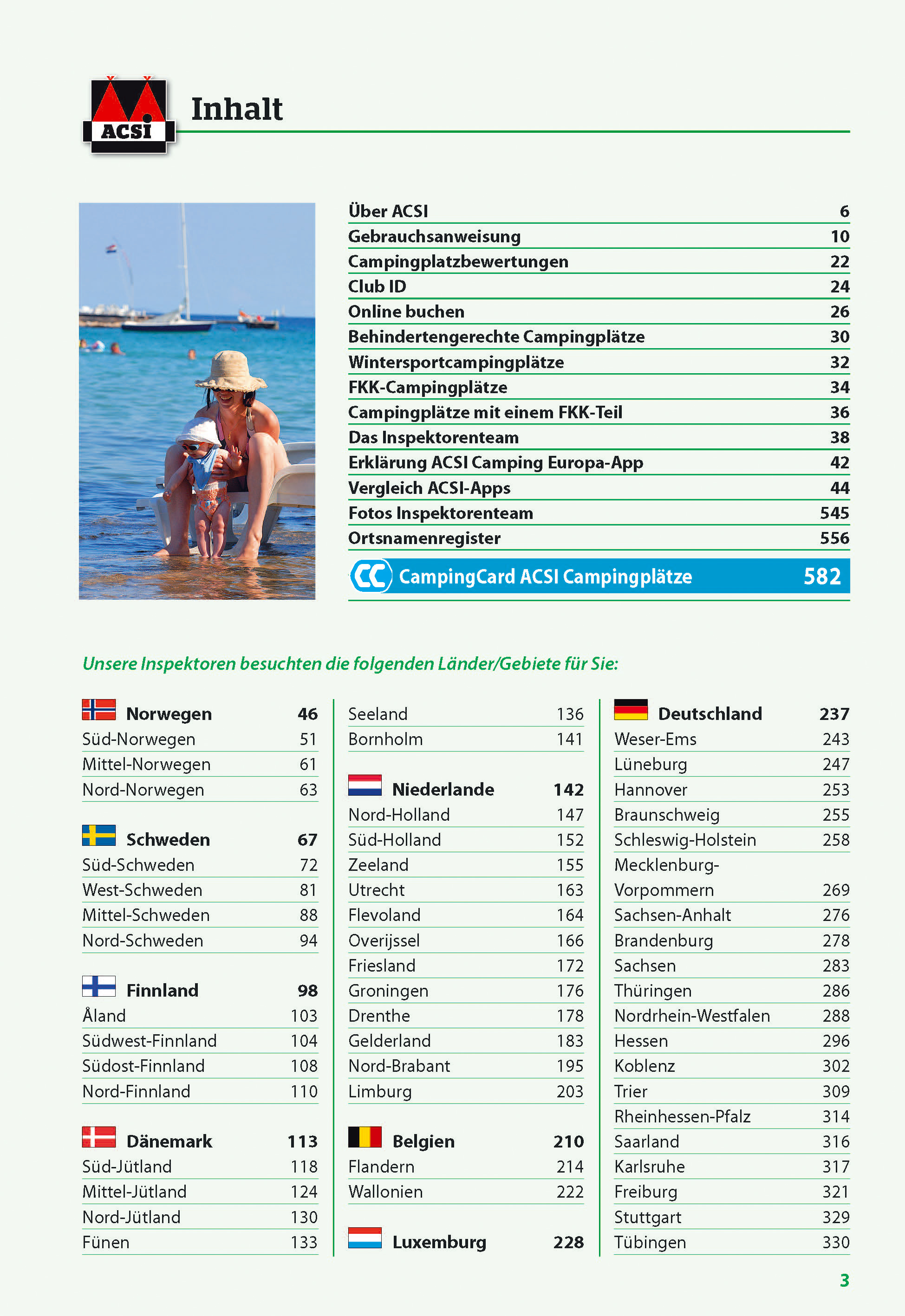 Wenn es um Camping geht, macht den Niederländern keiner etwas vor! Deshalb sind die holländischen ACSI-Camping-Guides ein Garant für besonders akribisch recherchierte Campingführer. Grosse Infotiefe: Über 1 000 Seiten mit rund 8 0100 Campingplätzen, bis zu 200 geprüfte Merkmale pro Platz. Hohe Kompetenz: Die rund 300 ACSI-Prüfer sind Jahr für Jahr vor Ort und stehen mit ihrem Namen für die Richtigkeit der veröffentlichten Aussagen. Extrem gutes Preis-Leistungs-Verhältnis.