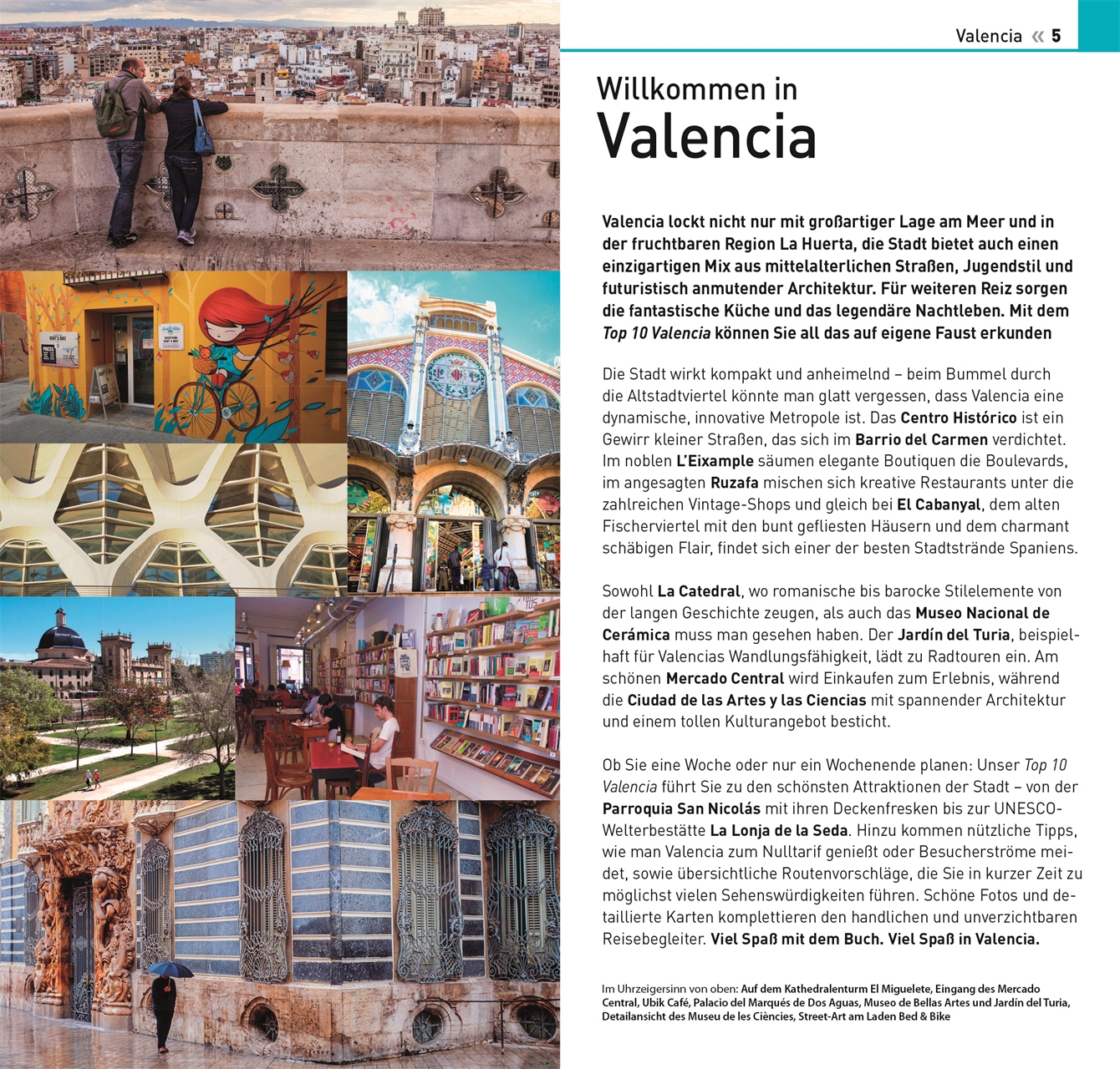 Top 10 Reiseführer Valencia Ihr kompakter Begleiter zu den interessantesten Orten der spanischen Küstenstadt mit den wichtigsten Top-10-Highlights und vielen praktischen Top-10-Listen zur schnellen und einfachen Orientierung vor Ort. Im Valencia-Reiseführer bekommen Sie einen perfekten Überblick zu Valencias Sehenswürdigkeiten, Museen, Kirchen, Stränden, Stadtteilen, zu den besten Shops, Restaurants und Cafés. Außerdem im Top 10 Reiseführer Valencia: Geheimtipps zu unbekannten Orten, kostenlose Attraktionen, anschauliche Stadtteilkarten, Extrakarte und visueller Kulinarik-Sprachführer zum Herausnehmen. Erleben Sie Valencia!