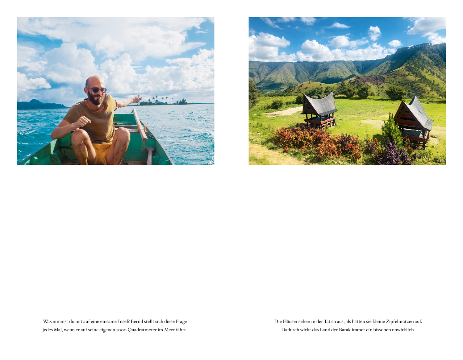 Unterwegs sein zwischen 17.508 Inseln. Sören Kittel erkundet Indonesien und gibt ebenso vielfältige wie überraschende Einblicke in den größten Inselstaat der Welt: In Jakarta kämpft er sich durch den Großstadtdschungel, auf Bali nimmt er an einem traditionellen Opferritual teil und auf Komodo macht er sich auf die Suche nach den letzten Drachen. Auf seiner Reise stö ßt Sören Kittel immer wieder auf das typische Phänomen Jam Karet, die »Gummizeit«. Die erste Lektion: Wenn Zeit dehnbar ist, bleibt Pünktlichkeit auf der Strecke. Der Vorteil: Es entsteht Raum für spontane Begegnungen und kuriose Umwege. Unterwegs mit Sören Kittel rückt der indonesische Alltag so nah, als wäre man selbst mittendrin.
