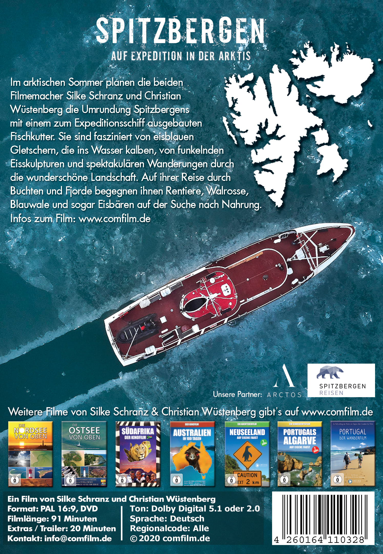 Im arktischen Sommer planen die beiden Filmemacher Silke Schranz und Christian Wüstenberg die Umrundung Spitzbergens mit einem zum Expeditionsschiff ausgebauten Fischkutter. Sie dokumentieren ihre Reise mit zwei Kameras und entdecken eine einzigartige Welt aus Eis, Schnee und Gletschern, die durch den Klimawandel bedroht ist wie nie zuvor. Auf ihrer Reise durch Buchten und Fjorde begegnen ihnen Rentiere, Walrosse, Blauwale und sogar Eisbären auf der Suche nach Nahrung. Nach "Die Nordsee von oben" und "Südafrika - Der Kinofilm" ist der neueste Film von Silke Schranz und Christian Wüstenberg nun auch auf DVD und Blu-Ray erhältlich.